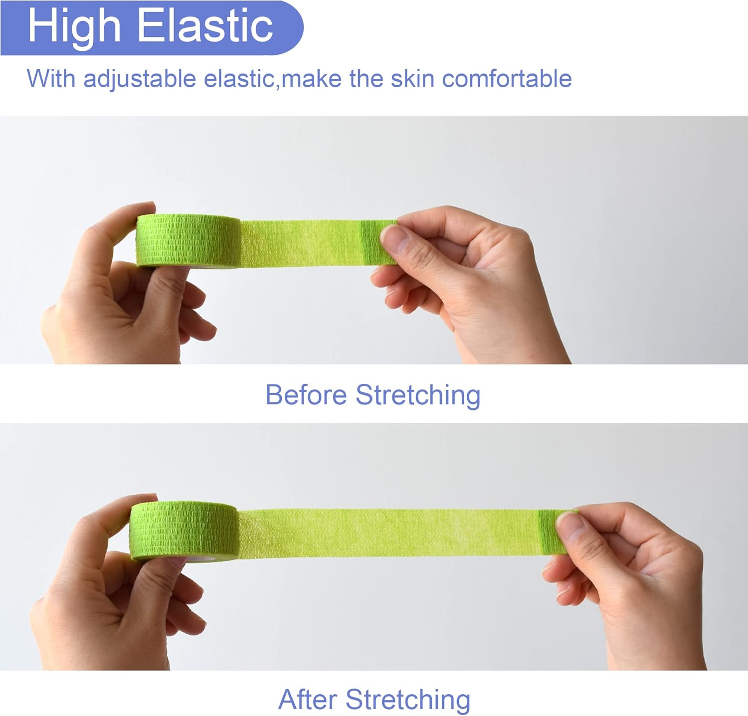 - Self Adhesive: The bandage wrap can stick to itself, stay in place, it can provide a stable support and protection. It will not stick to your hair or skin, so you will not get hurt when removing it.