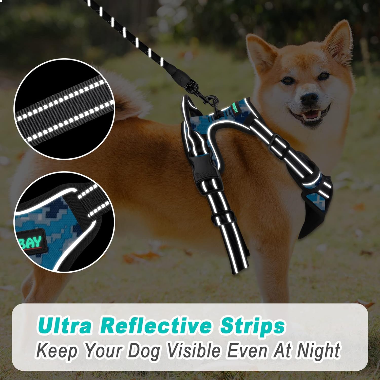 BARKBAY No Pull Dog Harness Large Step in Reflective Dog Harness with Front Clip and Easy Control Handle for Walking Training Running(Blue camo,S)