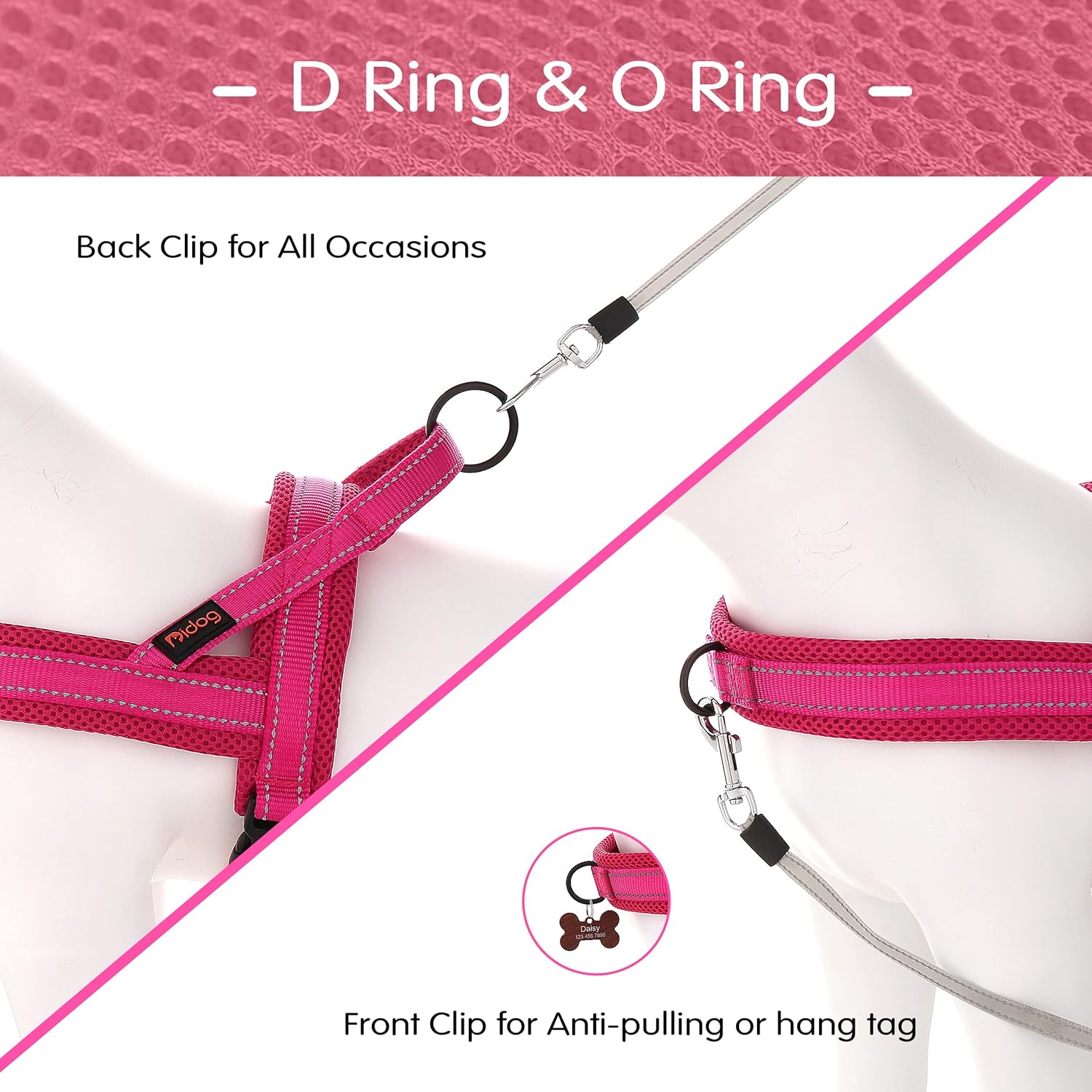 Didog No Pull Dog Harness with Soft Mesh Padded,Reflective & Quick Fit Light Weight Dog Strap Vest Harness,Easy for Walking Training (M:Chest 21-26", Mesh-Hot Pink)