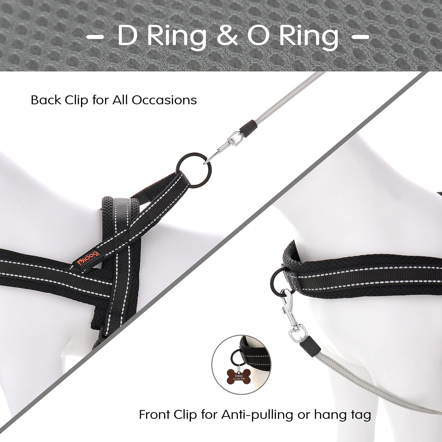 - Effective No Pull & No Choking - The front D ring is welded and link leash here make the harness effective no pulling, no worrying about dog choked when a sudden pull, eliminate leash pulling;