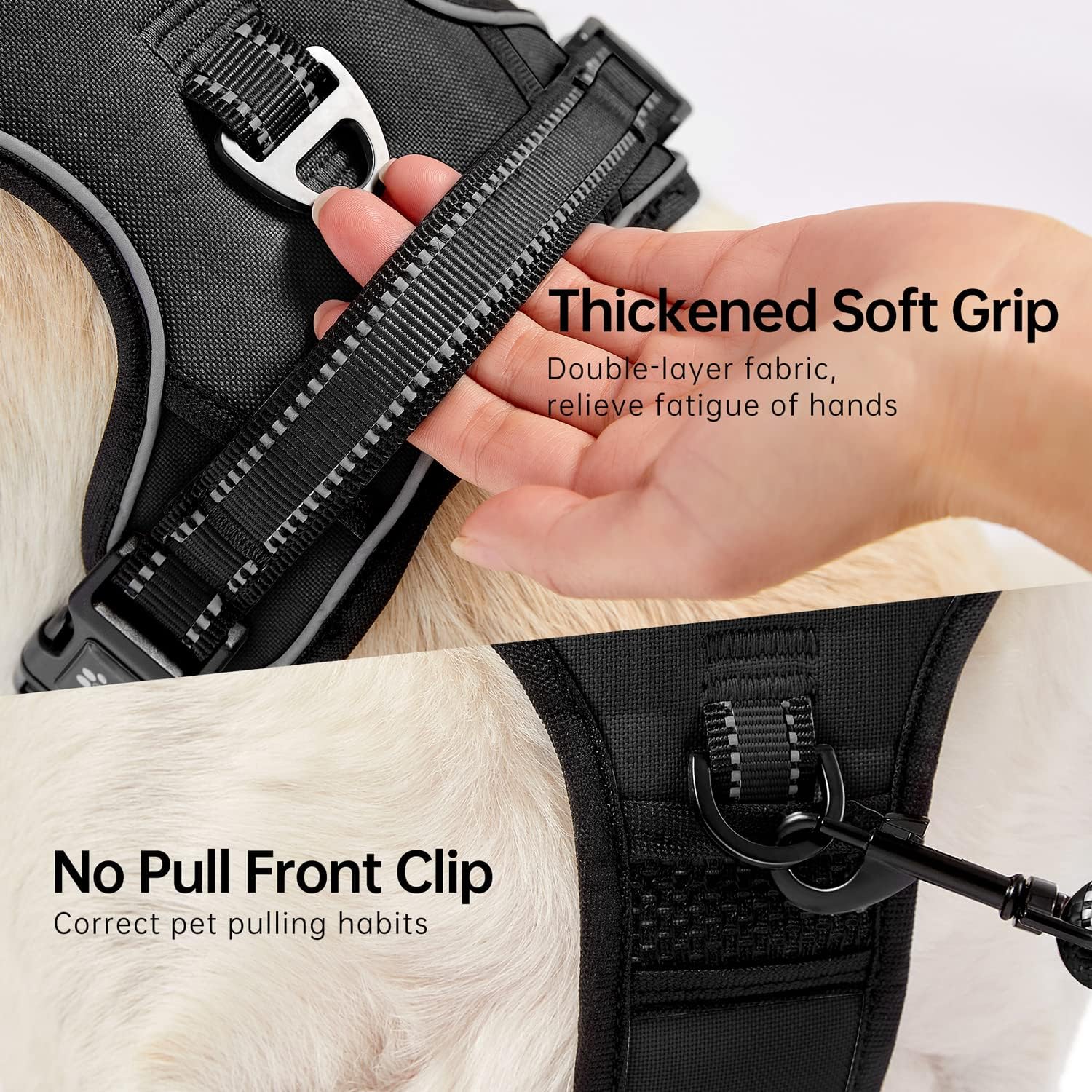 NESTROAD No Pull Dog Harness,Adjustable Oxford Dog Vest Harness with Leash,Reflective No-Choke Pet Harness with Easy Control Soft Handle for Large Dogs(X-Large,Black)