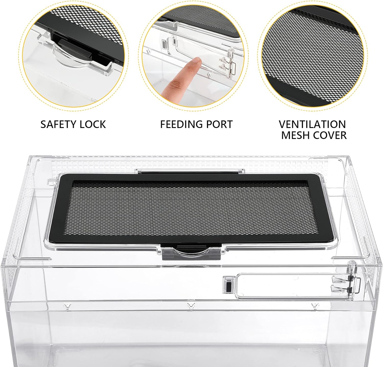 - Outstanding Design Details: Different from the ordinary acrylic material terrarium, our terrarium never break, HELIME PC terrarium adopt the one-piece design, no need to assemble, waterproof bottom makes this tank can be used both as a desert terrarium and rainforest tank, the feeding cover at the top, easy to feed your pet and prevent escape