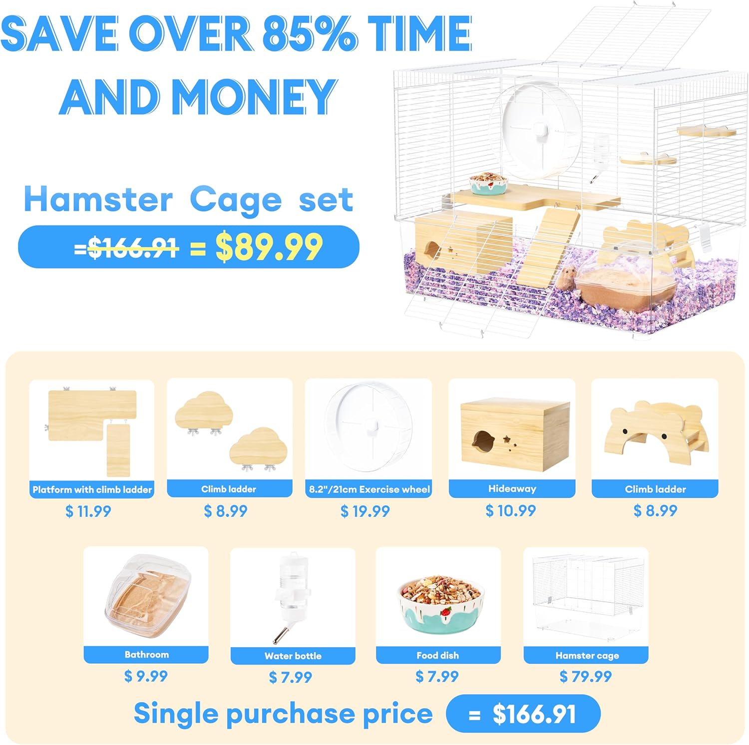 - Versatile Accessories: This gerbil cage comes equipped with various accessories such as a hamster hideout house, hamster wheel, hamster toys, tunnel, sand bath container, food bowl, water bottle, and platform, enhancing your hamster's living experience and enabling customization based on your pet's needs.