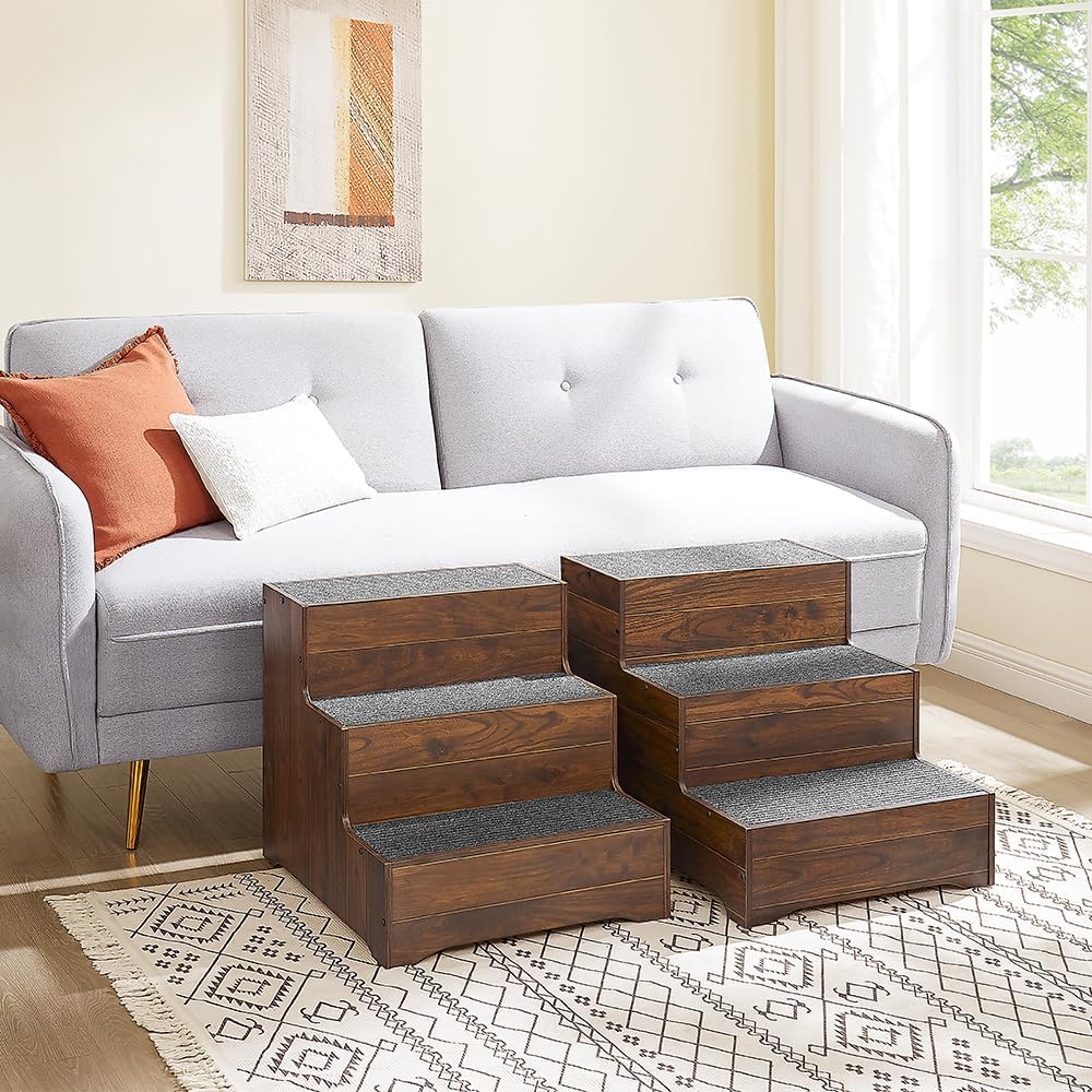beeNbkks Furniture Style Dog Stairs, Pet Steps for Small Dogs and Cats, Wooden Non-Slip Pet Ladder for Elderly Injured Pets Short Legged Puppy to Reach Couch Sofa High Bed Windowsill