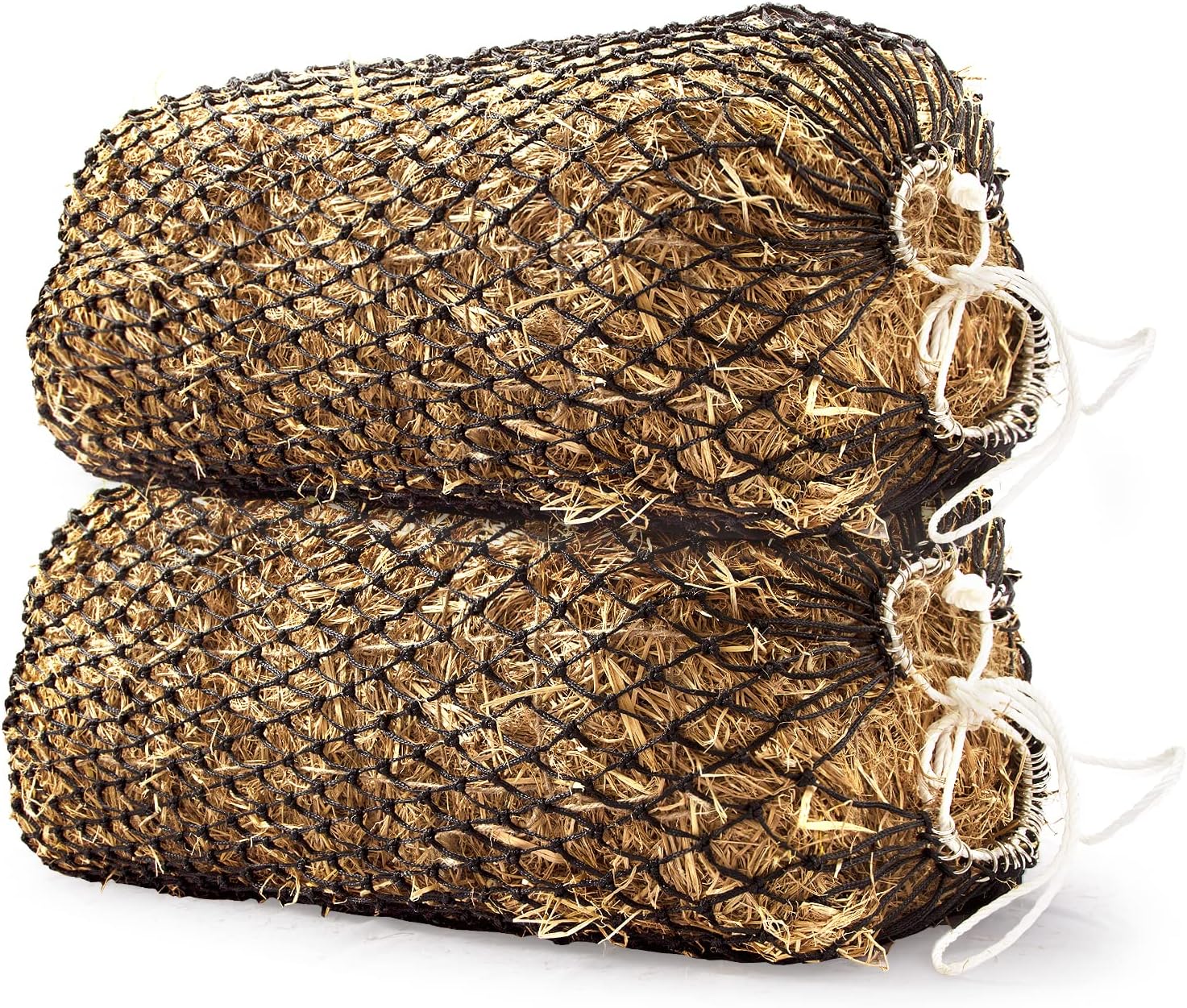 - 🐴【Saves Time, Money, and Hay】When you travel with your horse you can hang hay from the ground over a fence, in a horse pen, or on a trailer. Small mesh hay consumption slows down to a natural rate. Up to 50% less hay is wasted than if it is not used, your hay will last longer and there is less debris to clear from the ground.