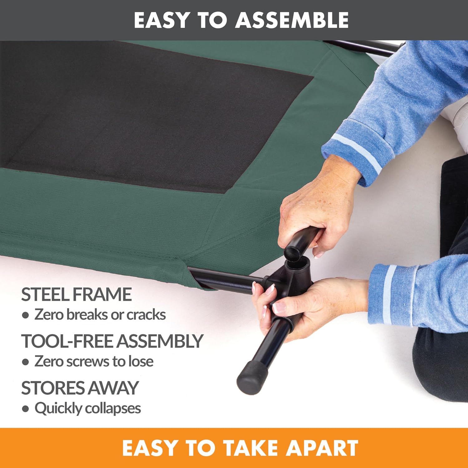 - COLLAPSIBLE: Collapsible dog cot is easy to assemble and disassemble, no tools necessary making this portable bed great for use during travel, camping, picnicking, place board training and more