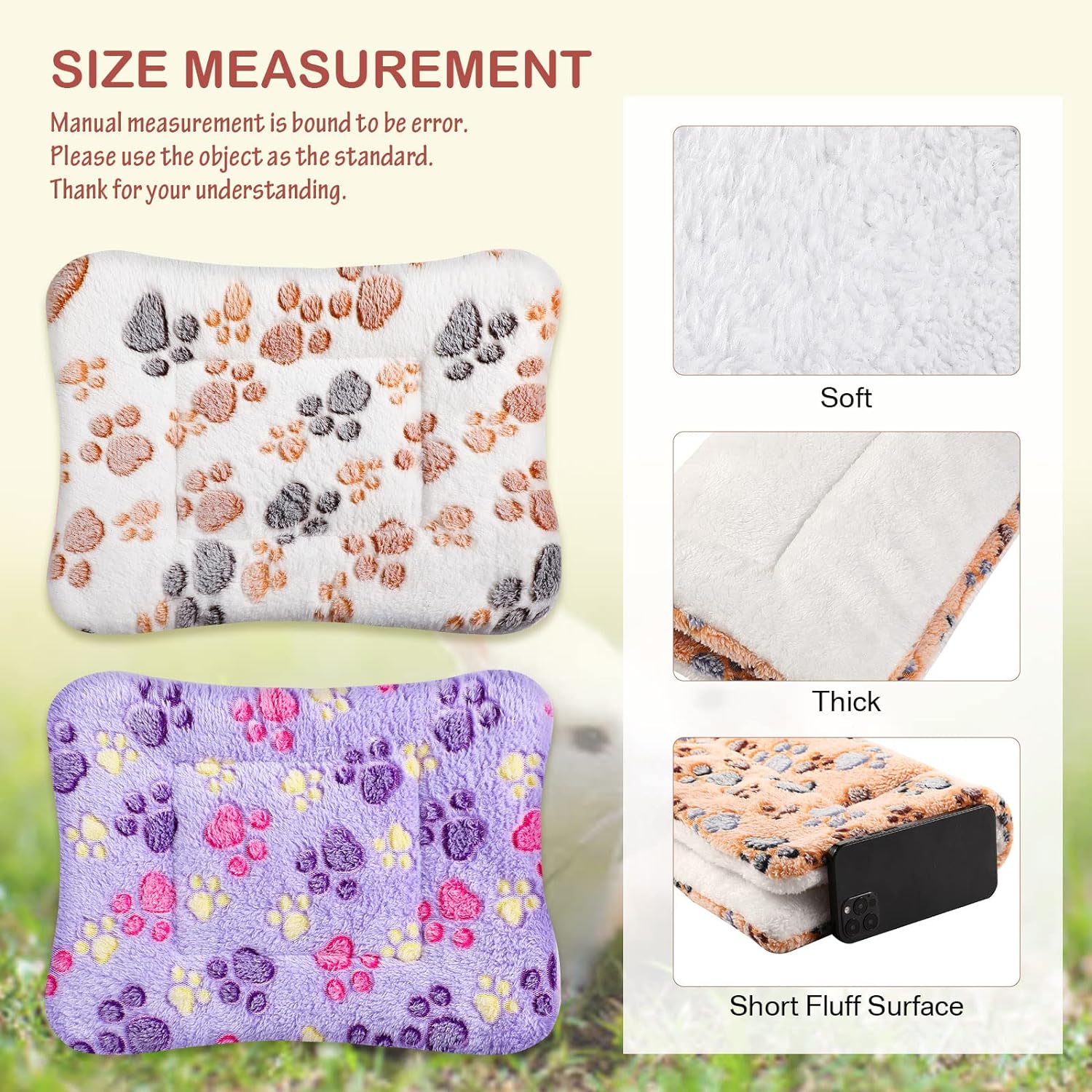 4 Pack Ultra Soft Dog Cat Bed Mat with Cute Prints Reversible Fleece Dog Crate Kennel Pad Cozy Washable Thickened Hamster Guinea Pig Pet Bed Mat for Small Animals(13 x 10 Inches,Vivid Color)