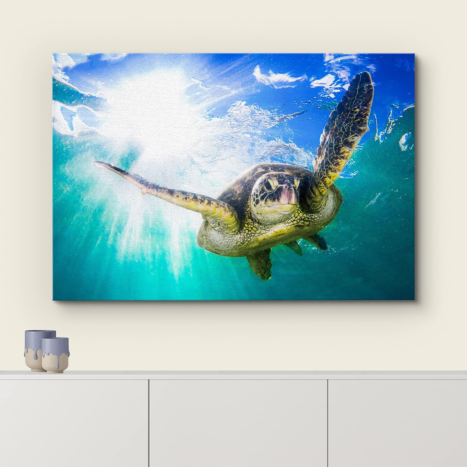 wall26 Canvas Print Wall Art Sunlight Tropical Ocean Underwater Turtle Nature Animals Photography Realism Rustic Scenic Landscape Wilderness Earth Colorful for Living Room, Bedroom, Office - 12"x18"
