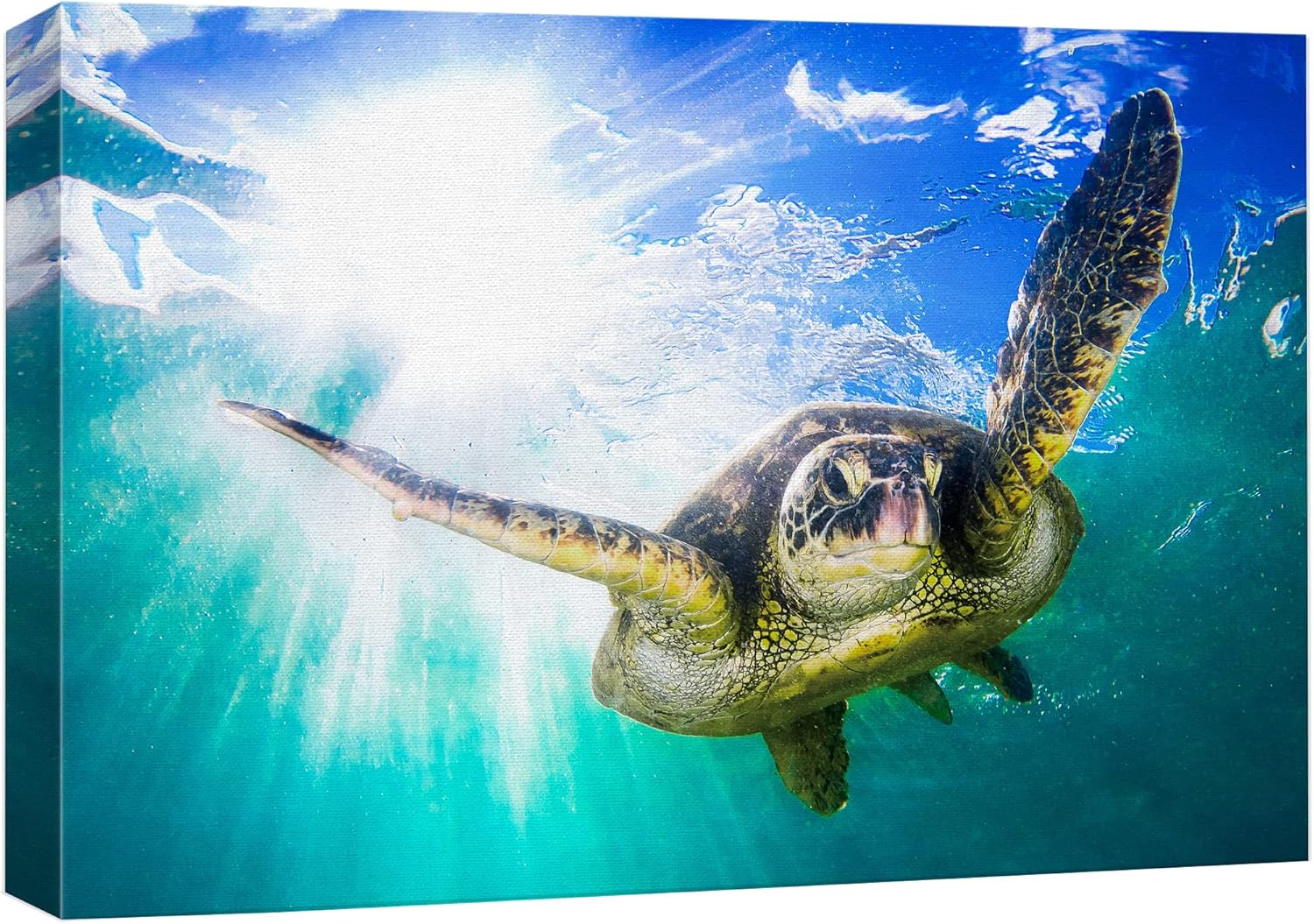 wall26 Canvas Print Wall Art Sunlight Tropical Ocean Underwater Turtle Nature Animals Photography Realism Rustic Scenic Landscape Wilderness Earth Colorful for Living Room, Bedroom, Office - 16"x24"