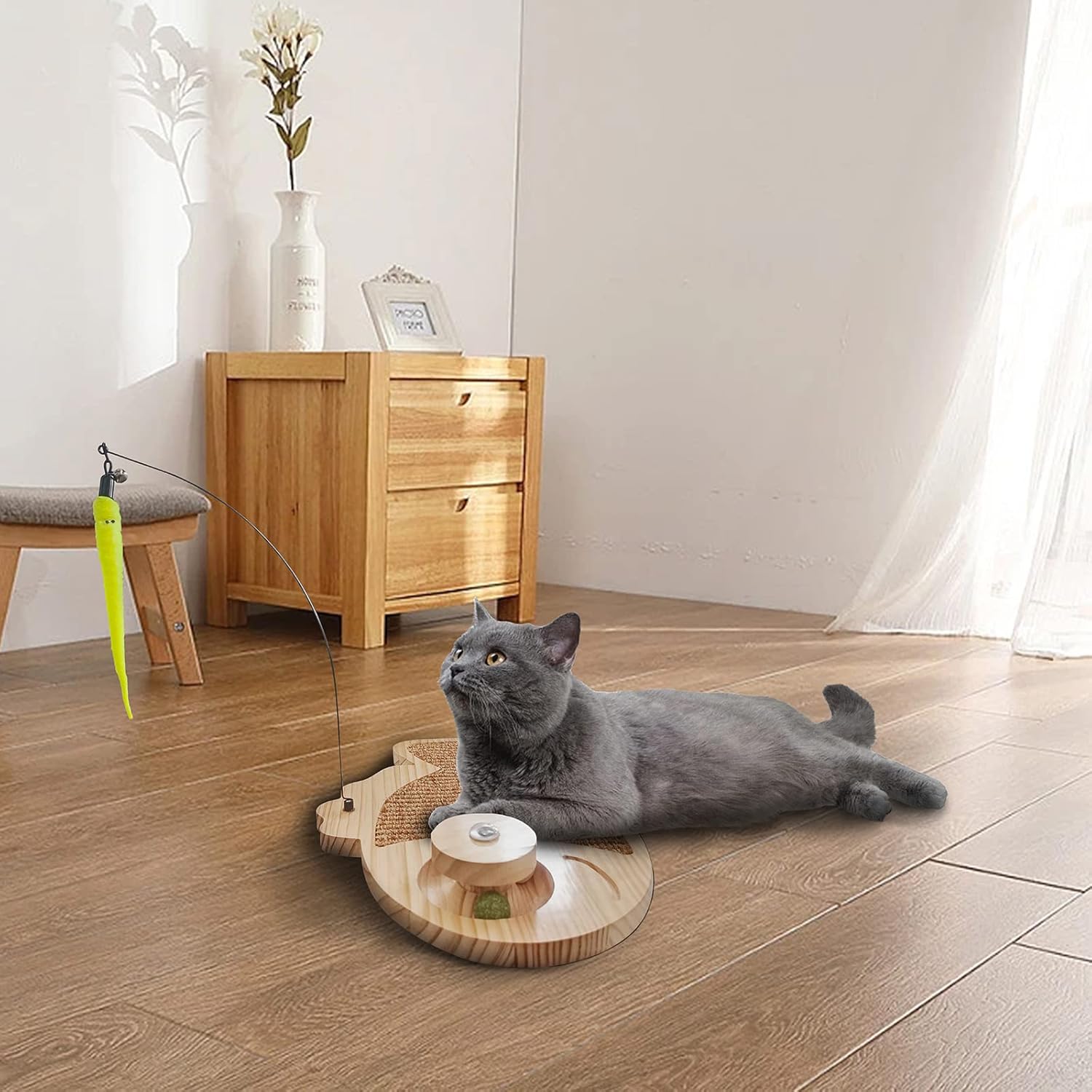 - Non-toxic & Safe & Durable – Fish shape design, the body is made of natural woven sisal and pine which is more durable and wear-resistant than corrugated board. The cat toy roller made by pine and catnip balls. Is environmentally and cat-friendly.