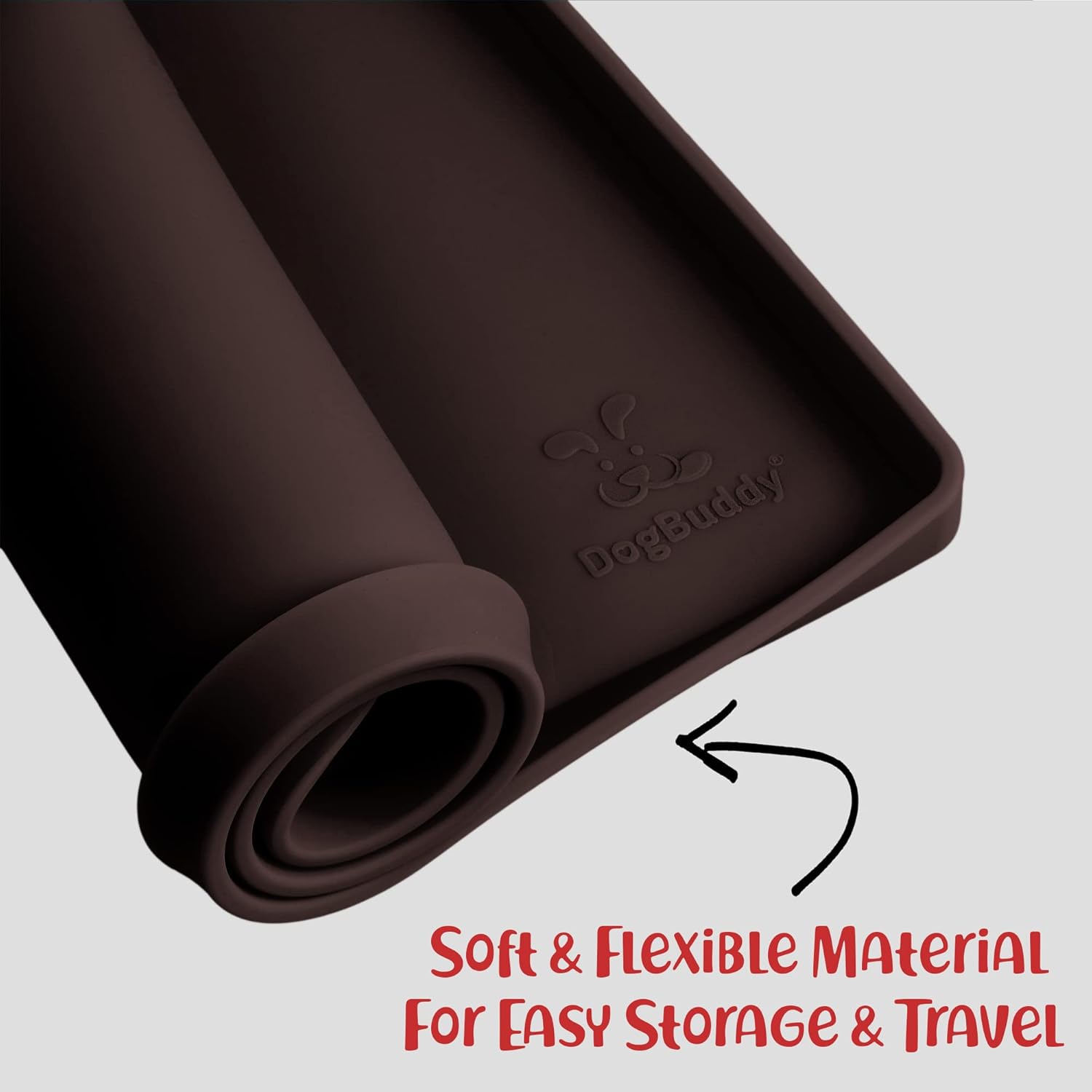 DogBuddy Dog Food Mat – Waterproof Dog Bowl Mat for Food and Water, Silicone Pet Feeding Mats for Floors, Non-Slip Placemat with High Edges for Dogs Bowls, Puppy Essentials (XL: 28" x 18", Coffee)