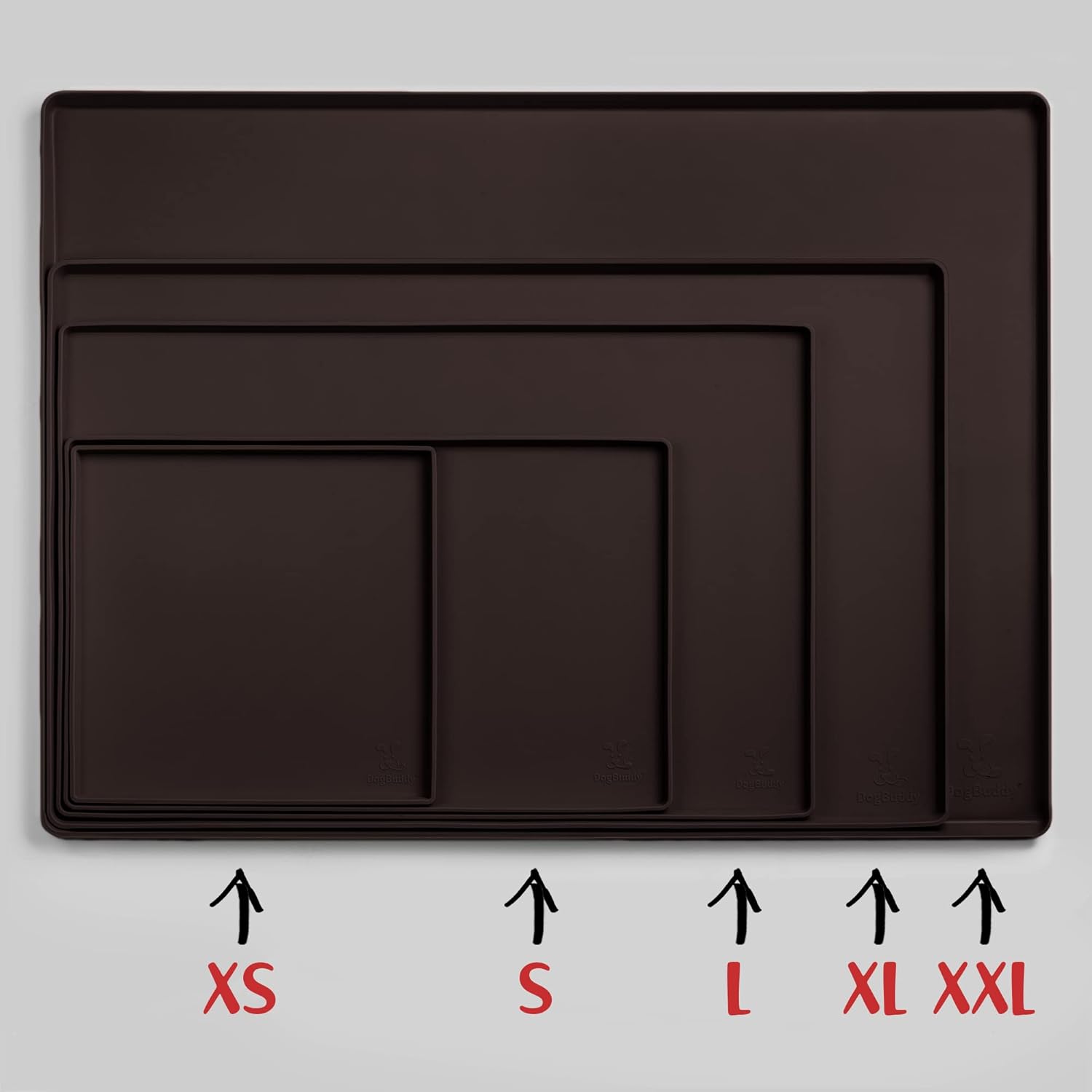 DogBuddy Dog Food Mat – Waterproof Dog Bowl Mat for Food and Water, Silicone Pet Feeding Mats for Floors, Non-Slip Placemat with High Edges for Dogs Bowls, Puppy Essentials (L: 24" x 16", Coffee)