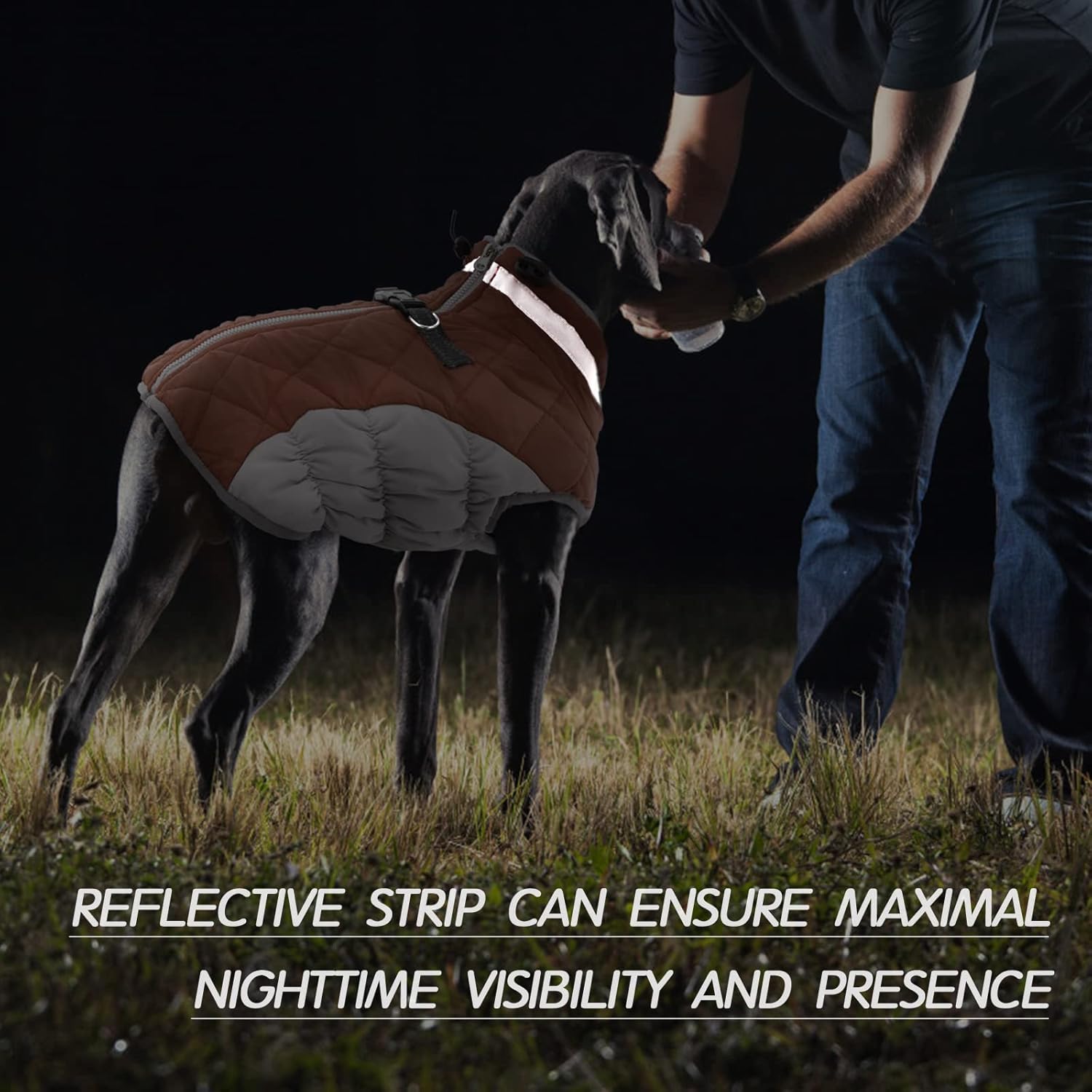 FUAMEY Dog Coat for Large Dogs,Waterproof Dog Winter Jacket with Harness Built in Puppy Cold Weather Coats Reflective Pet Vest with Zipper Warm Fleece Dogs Snowsuit Windproof Brown XXXL