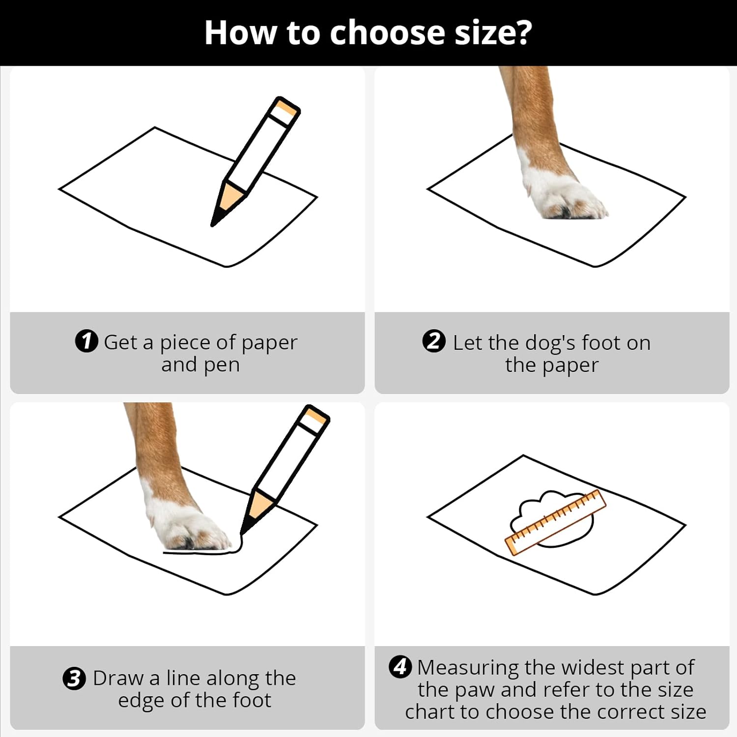 - 【Size 2】: 1.77.1''x2.17''(W*L).for 14-21(lbs).Great for all kinds of dogs.Place your pet's paws on paper; Mark the width of the paws, including the toes and nails,Except for the hair;Please refer to the picture size chart to choose the right size for your puppy.