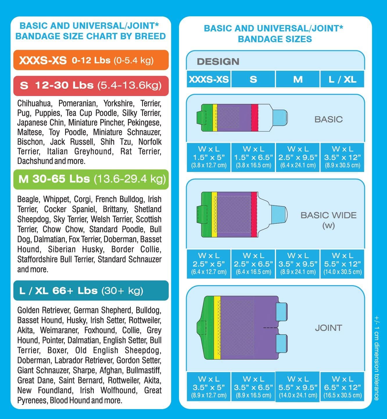Basic Leg Bandages for Dogs, Cats, Pets -First- aid Non Adhesive Fur Friendly, Soft Stretch Wound Care, hot Spots, Fungus, Adjustable Fastening Strap Value Pack (2XS/XS 12-Pack)