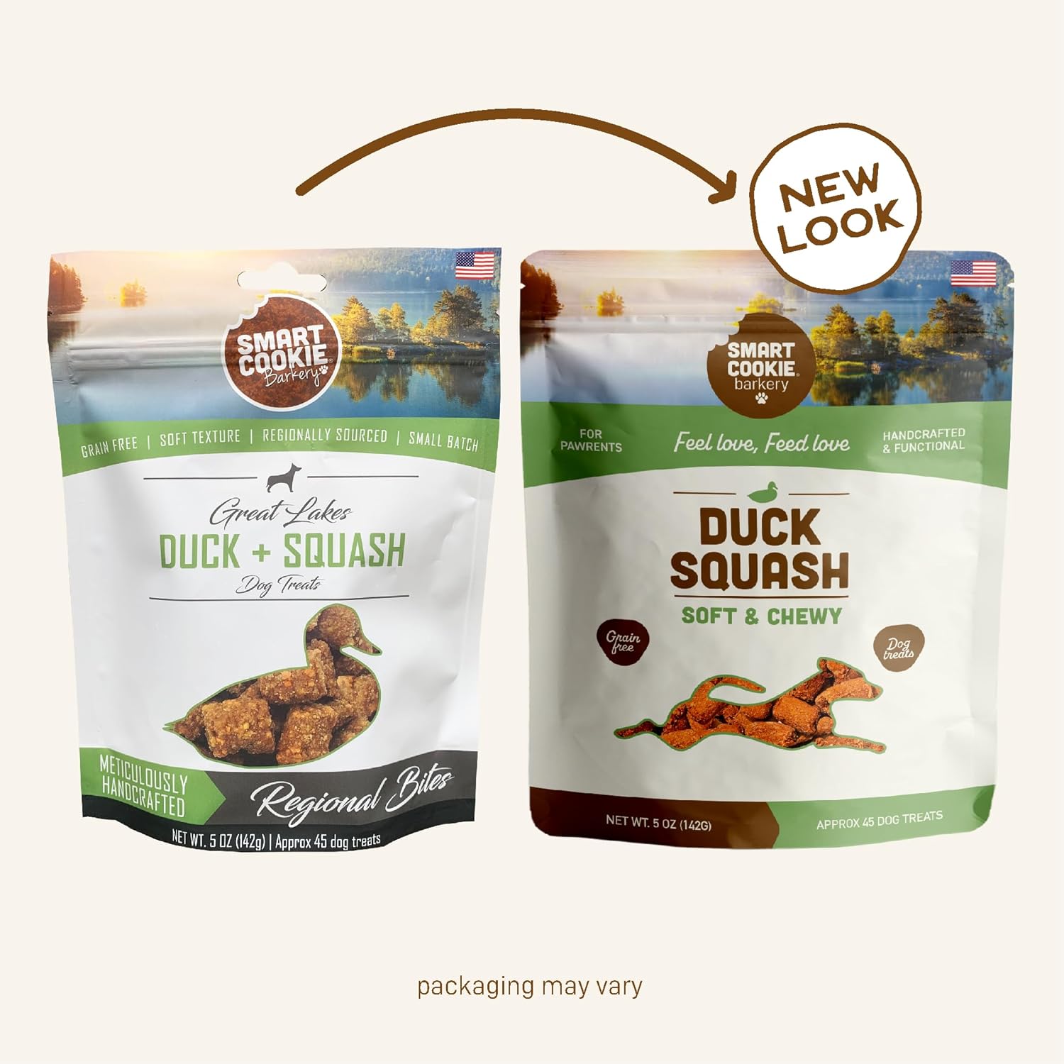 Smart Cookie All Natural Dog Treats - Duck & Squash - Training Treats for Dogs & Puppies with Allergies, Sensitive Stomachs - Soft Dog Treats, Chewy, Grain Free, Made in USA - 5oz, Pack of 3