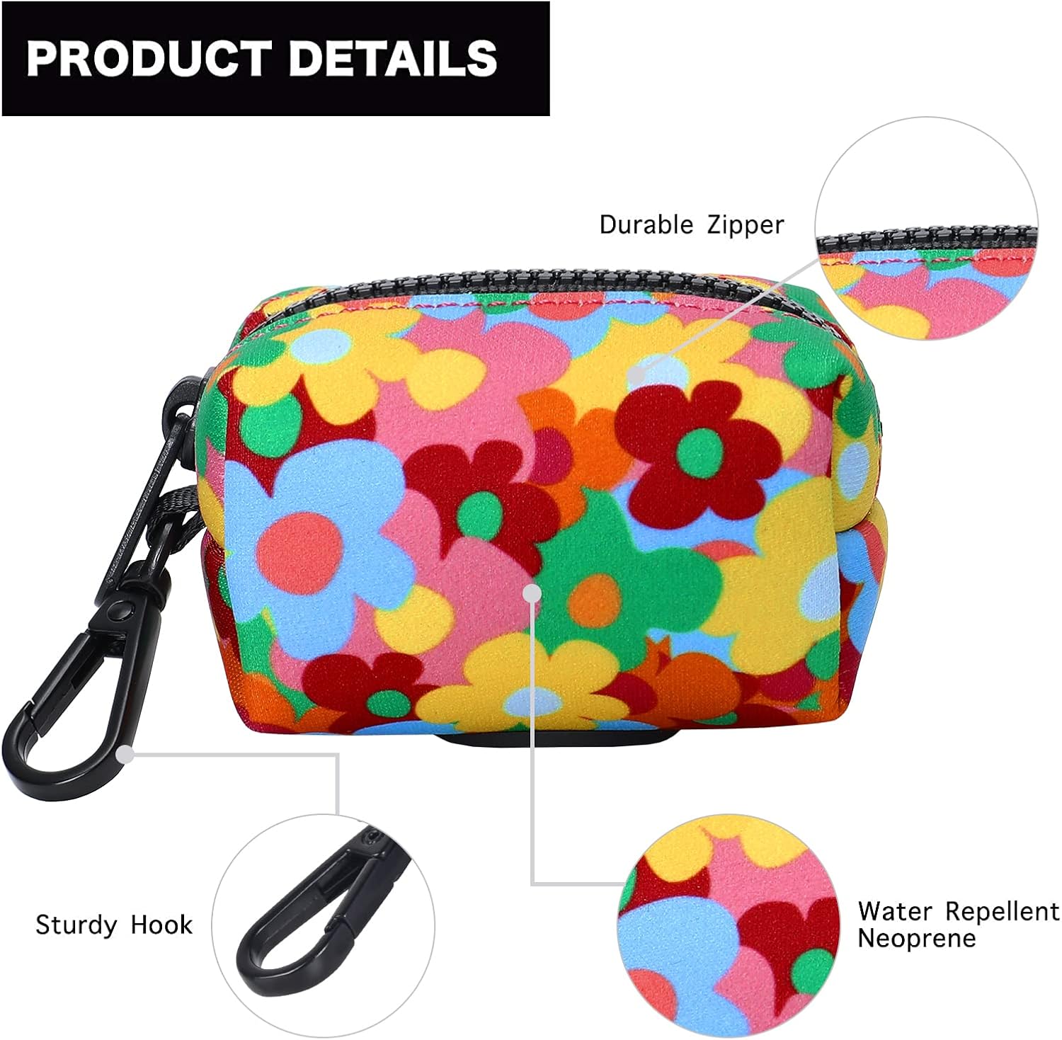Petmolico Dog Poop Bag Holder Leash Attachment, Pet Waste Bag Dispenser Zippered Pouch, Fits Any Leash, Includes Free Roll of Dog Bags, Poop Bag Dispenser - 2 Pack, Colorful Flowers