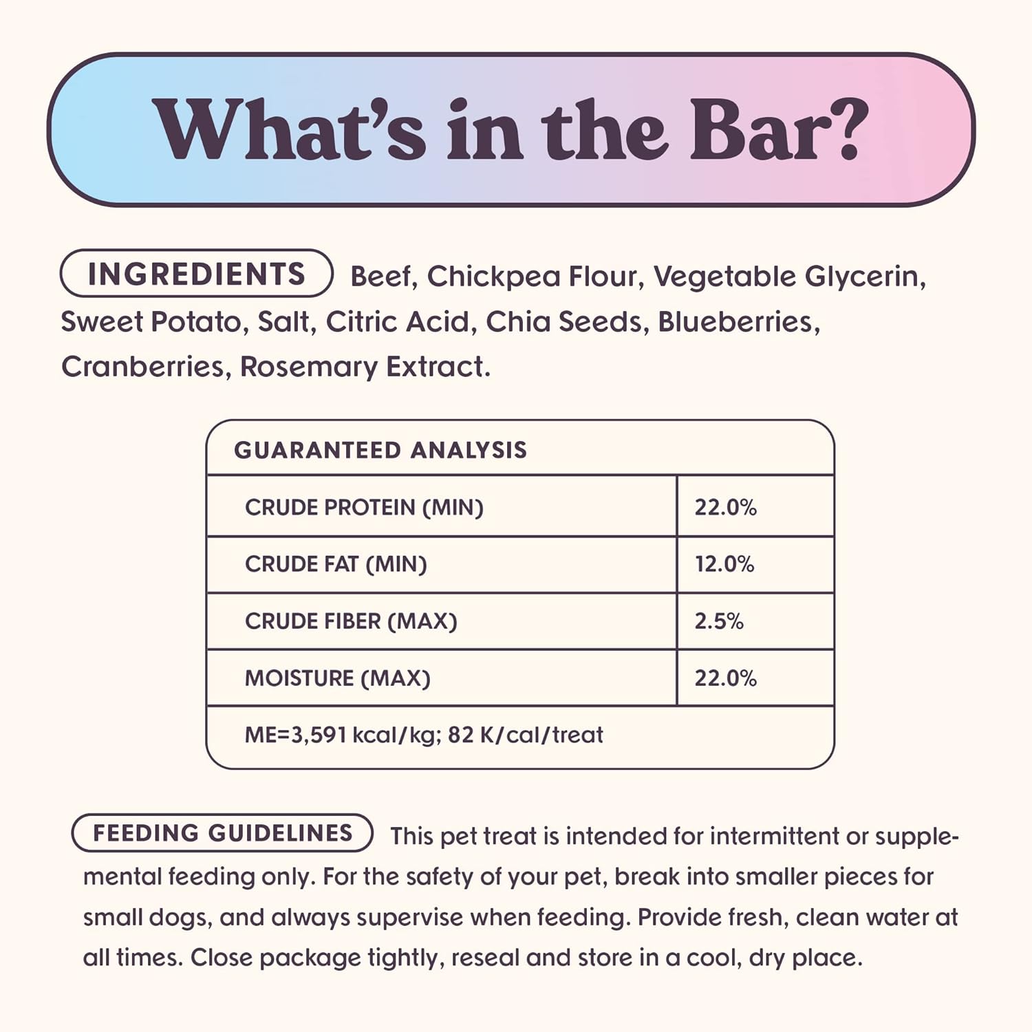 - NATURAL INGREDIENTS: These meaty training treats are perfect for dogs of all sizes and breeds, and contain plant-based superfoods like sweet potatoes, chia seeds, blueberries, and cranberries.