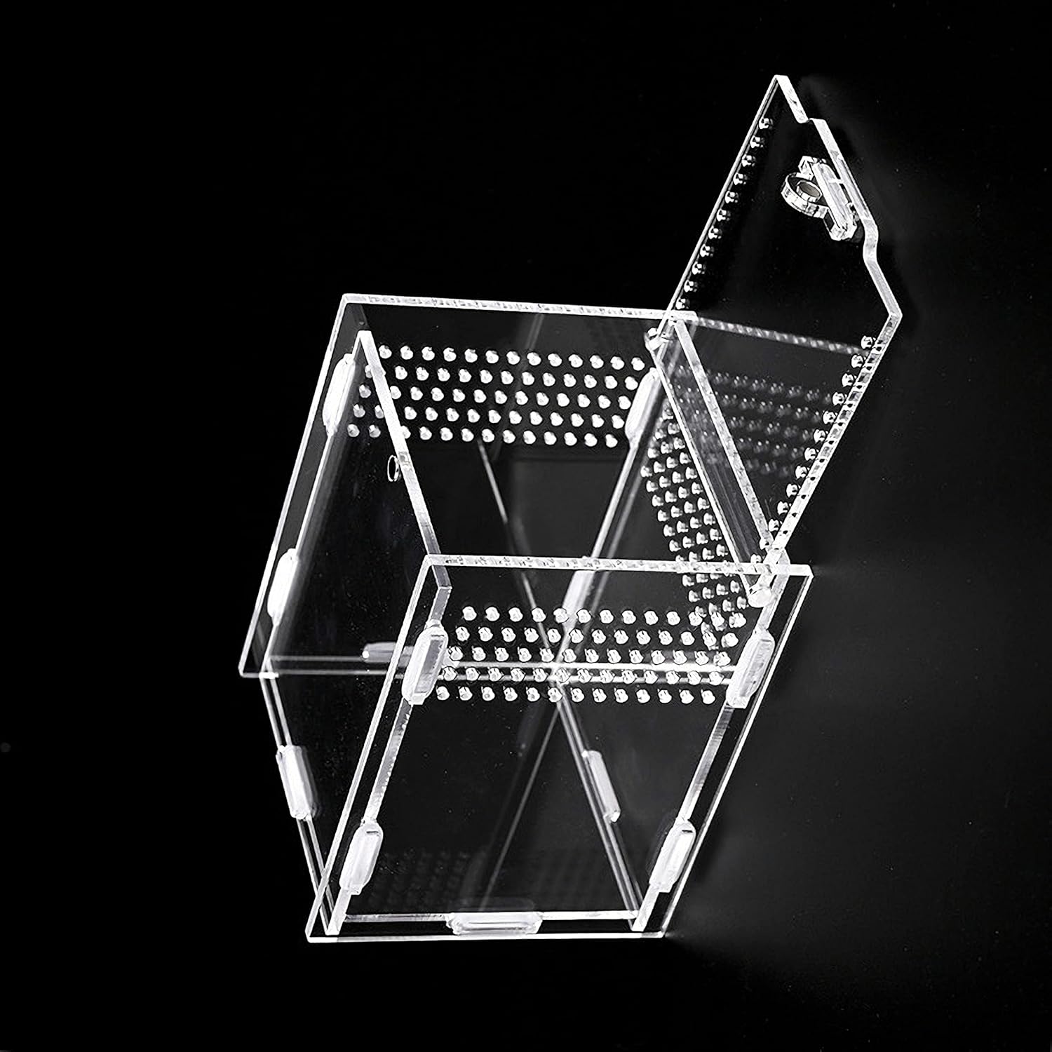 - 【Material】The reptile feeding box is made of acrylic, the assembled size is 12x12x20cm/4.7x4.7x7.8 inch,360 degree full view, completely transparent, clear and bright, so that you can see the behavior of small pets anytime, anywhere. It is easy to observe and clean.