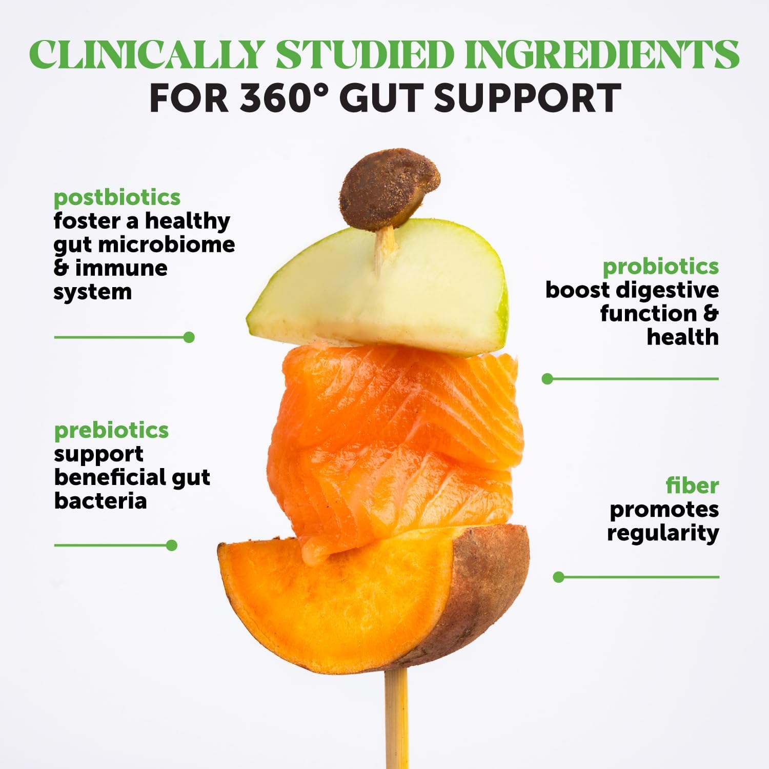- Provide maximum support for their gut, immune, and bowel health: These easy-to-give chews contain key functional ingredients to help ease tummy troubles and grow healthy gut microbiomes, so your dog can feel their best. Our unique blend of natural soluble and insoluble fibers work together with other natural ingredients to improve stool quality, helping them feel more comfortable when it’s time to go. Plus, your dog will absolutely love the delicious natural chicken flavor!