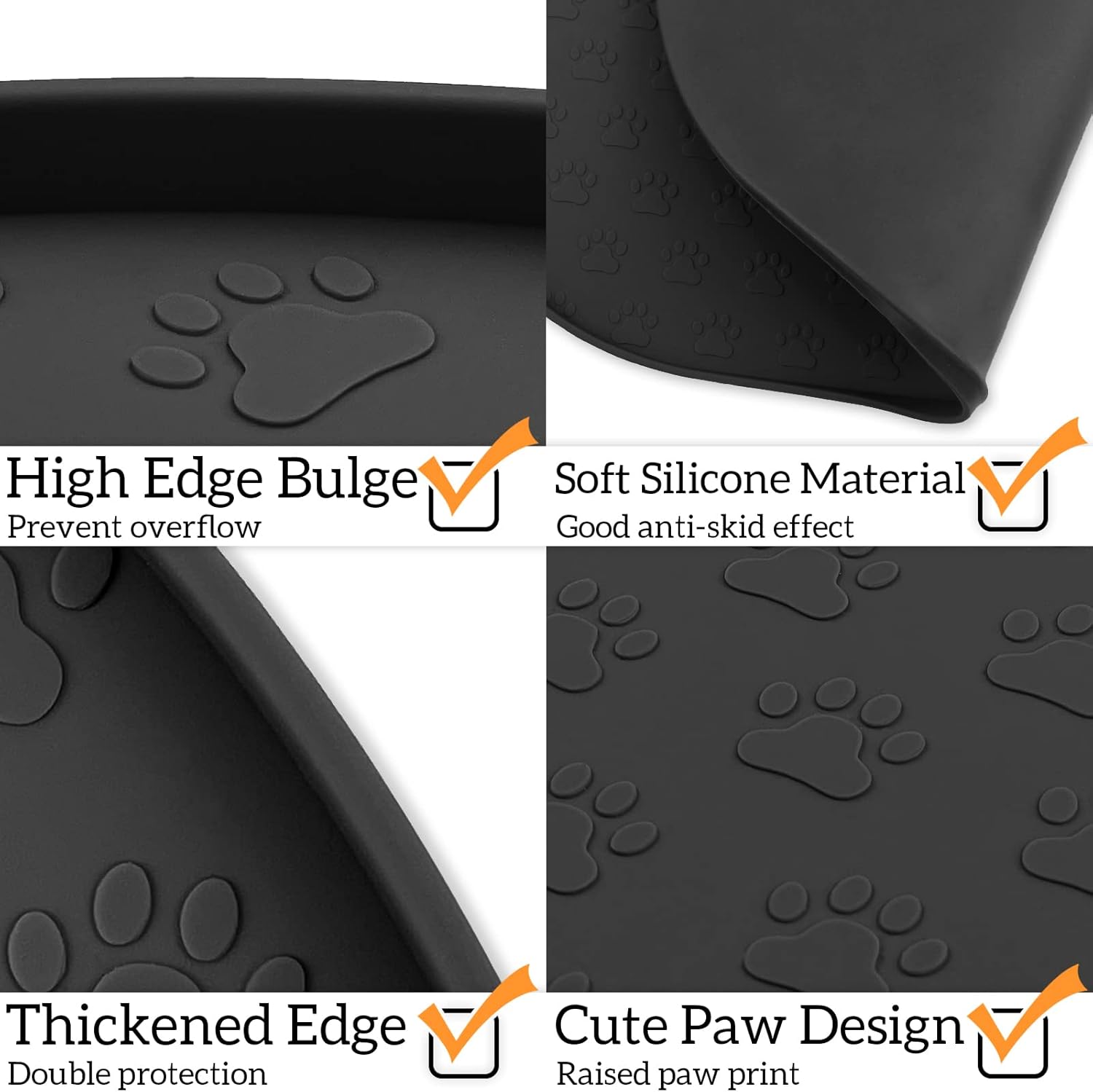 KPWACD Pet Feeding Mat for Dogs and Cats, Silicone Dog Placemat Non-Slip Waterproof Bowl Mats Prevent Food and Water Overflow, High-Lips Puppy Dish Tray Mat Suitable for Large Medium Small Pets, Black