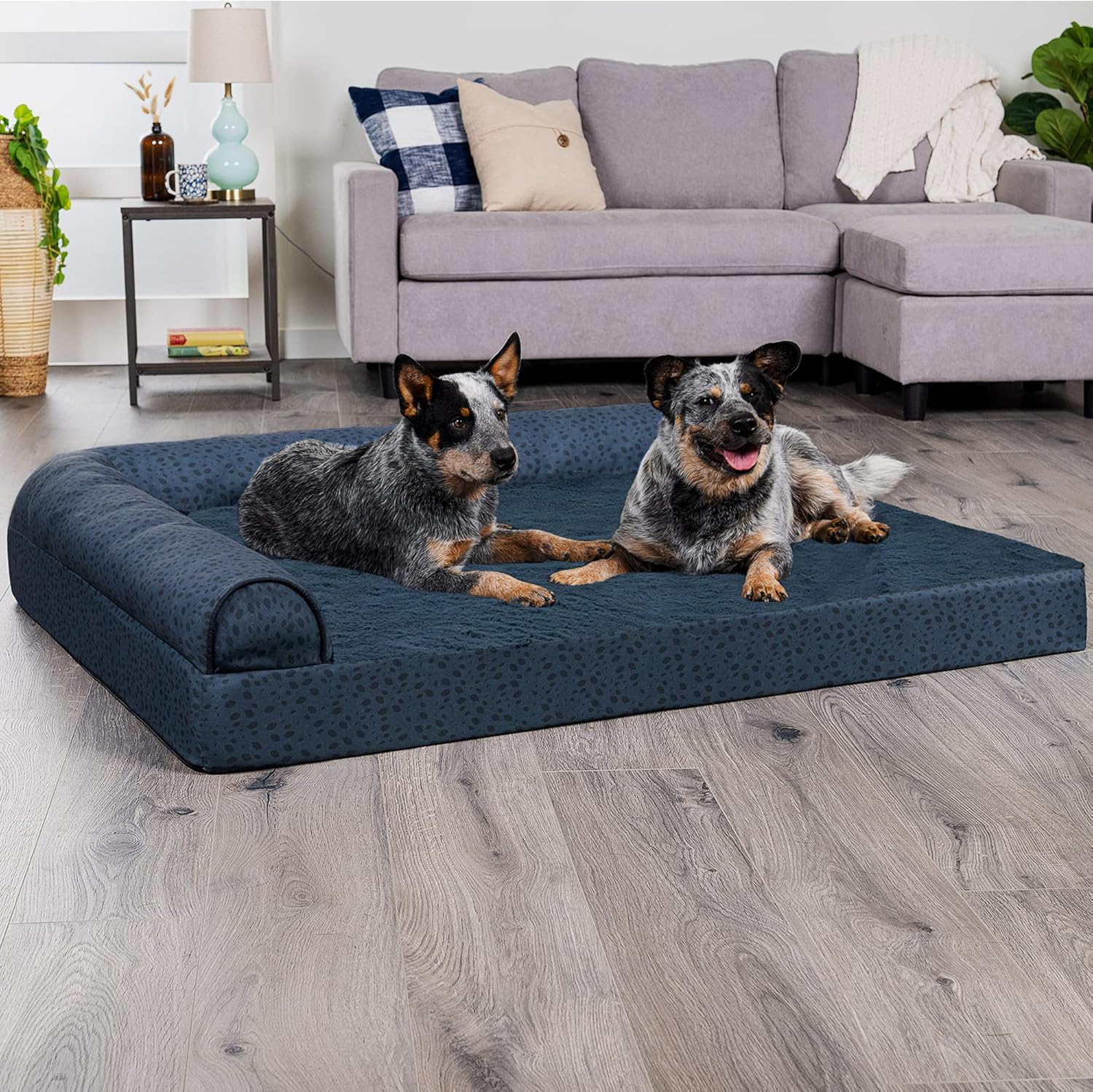 Furhaven Cooling Gel Dog Bed for Large Dogs w/ Removable Bolsters & Washable Cover, For Dogs Up to 125 lbs - Plush & Almond Print L Shaped Chaise - Blue Almonds, Jumbo Plus/XXL