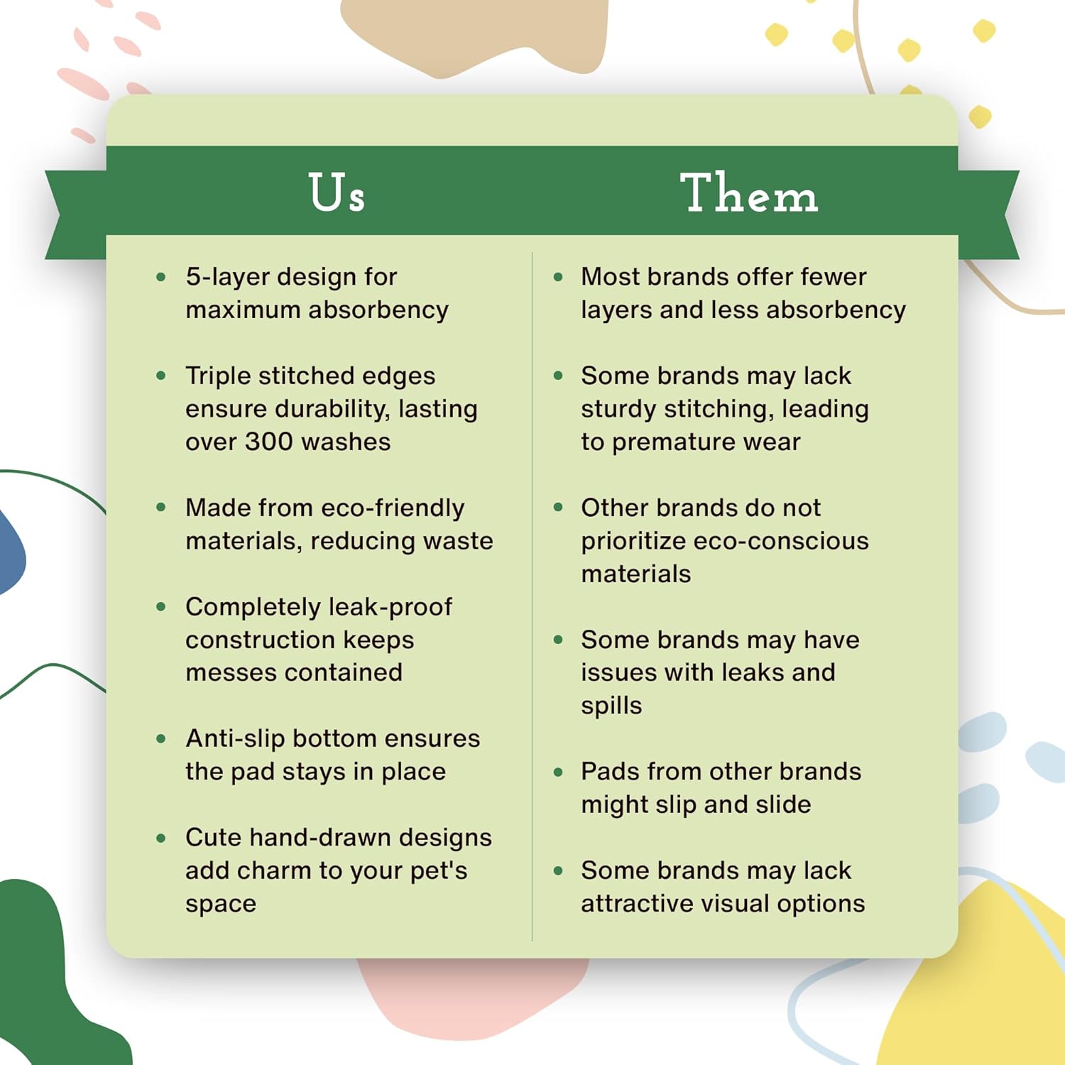 - Sustainable: Our reusable pee pads for dogs are an earth friendly, money-saving alternative to disposable dog pee pads, making them the ideal pet pads. So durable they withstand hundreds of washes.
