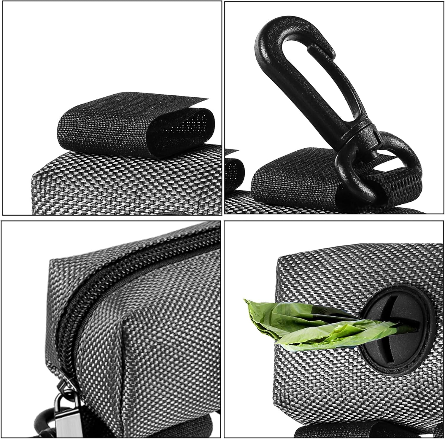 Dog Waste Bag Dispenser Pet Poop Bags Holder for Doggie Waste Bags Dispensers Soft Fabric Zipper Small Doggy Puppy Pouch for Leash Accessory Attachment with Carrier,Grey