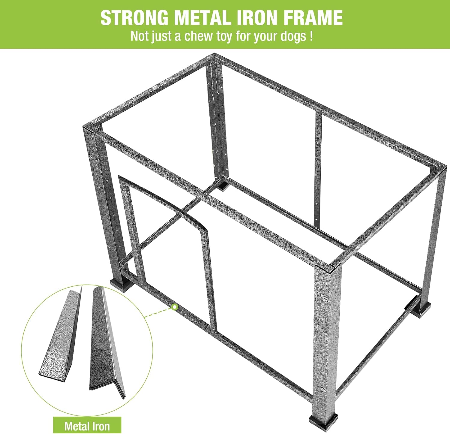 GUTINNEEN Chew Proof Dog House with Metal Iron Frame Outdoor Dog Kennel for Small Medium Large Indoor Dog Cage (43.3" L,Grey Color)
