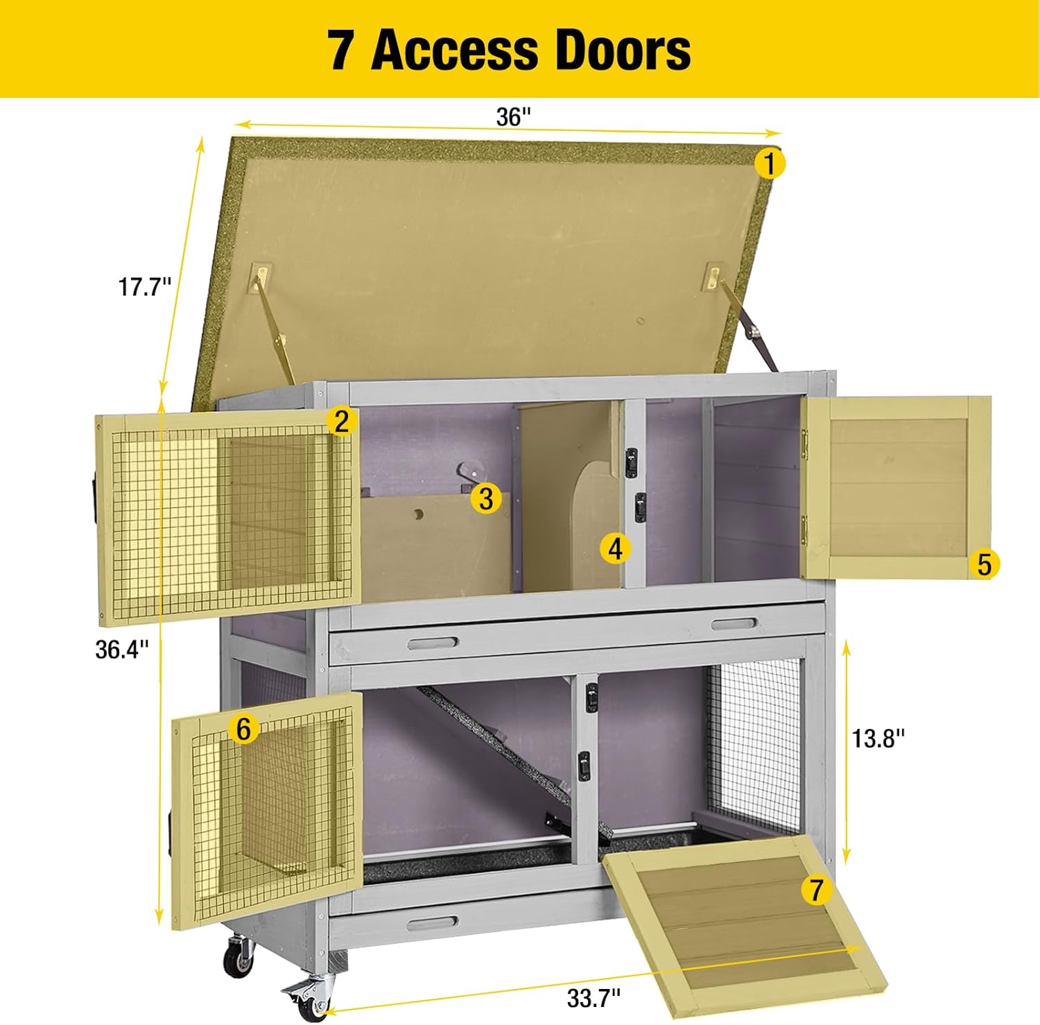 Aivituvin 36" Rabbit Hutch Bunny Cage Indoor Outdoor Guinea Pig Cage 2 Story Wth 2 Tray, Trap Door, Wheels