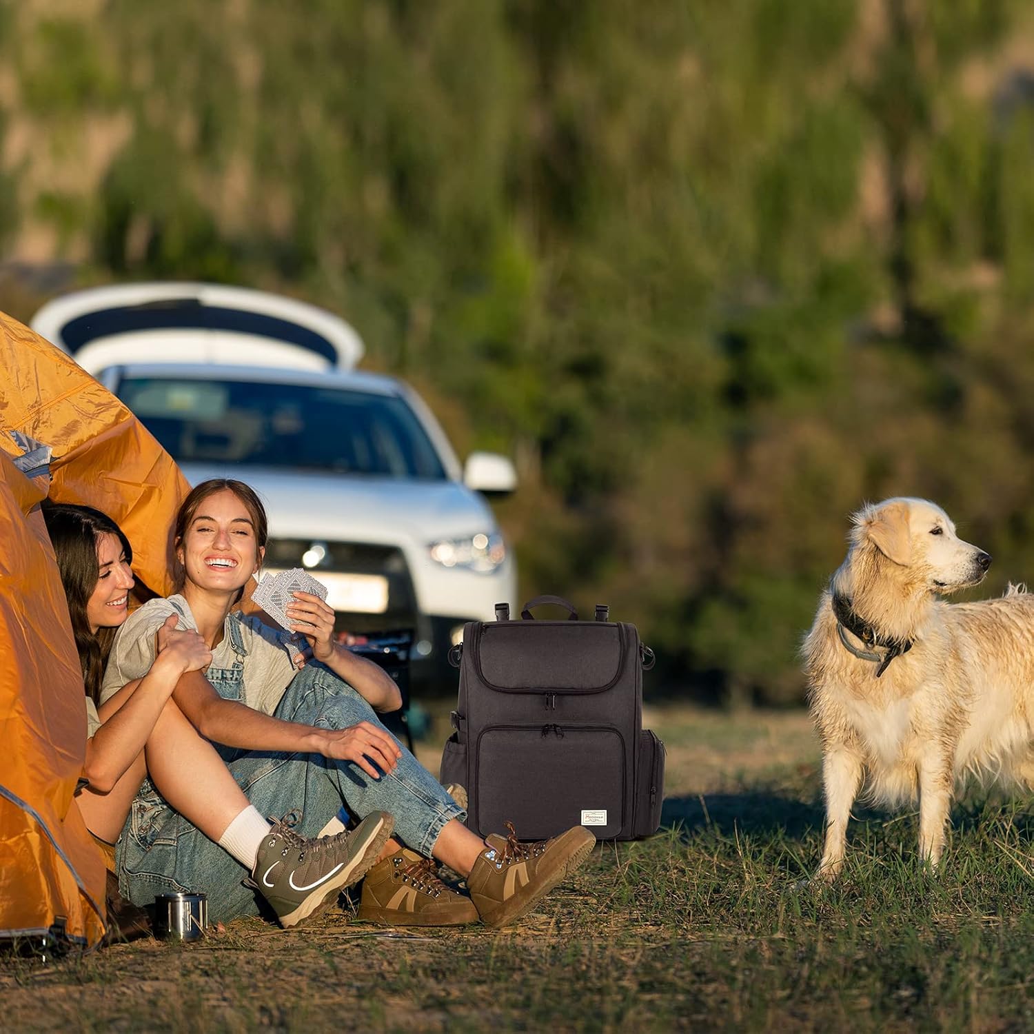 - MULTI-COMPARTMENT DOG TRAVEL BAG: This large dog backpack has a large inner compartment to store dog food, dog travel water dispenser, dog beach essentials and so on. The side pocket of this dog accessories backpack with zipper is for extracting tissue and dog poop bags. The top pocket on the dog travel bag is easy for you to hold your daily stuffs.The front pocket also folds down as a mat for easy and convenient pet feeding