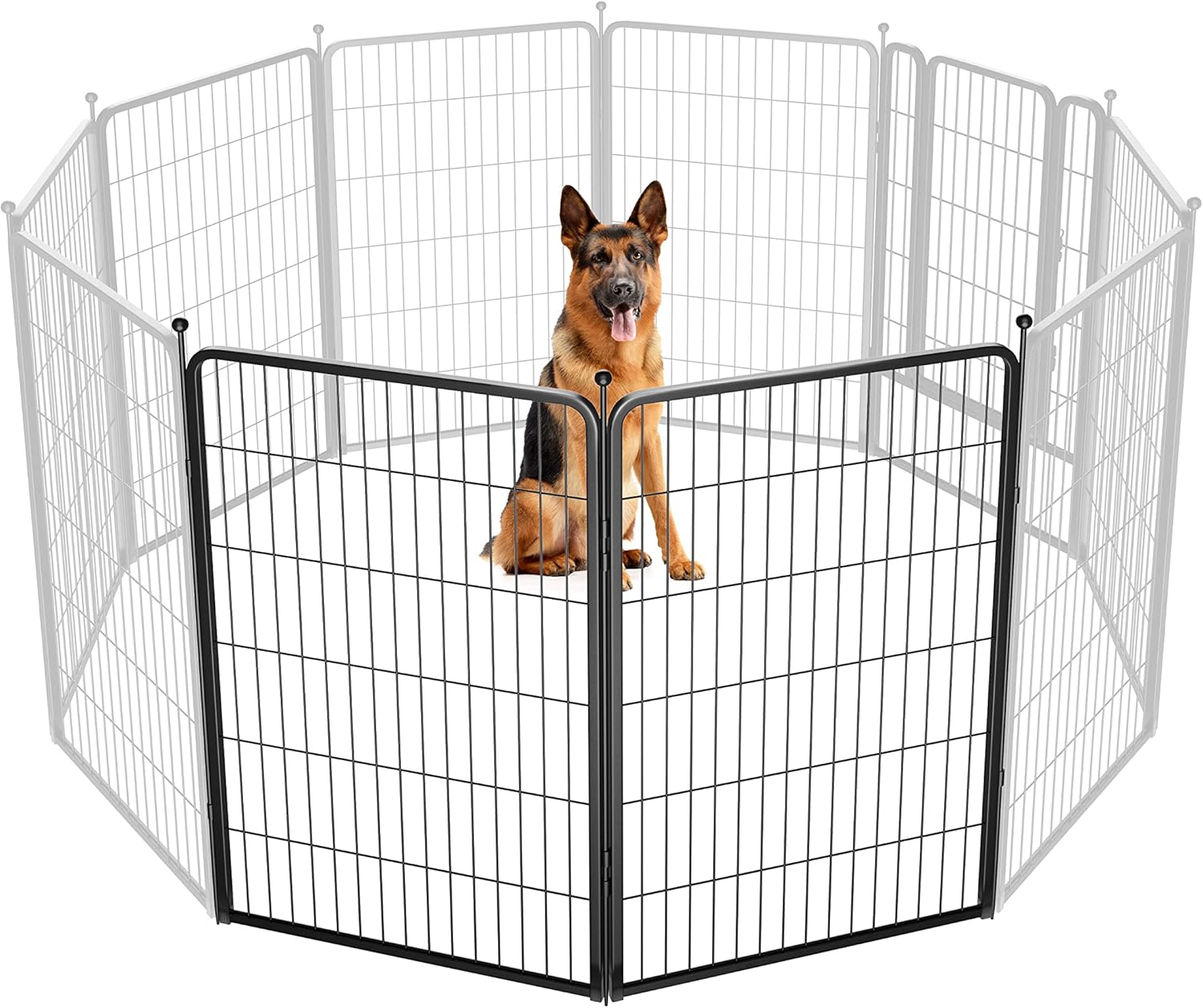 - Super easy to assemble: It won’t take you more than 5 minutes to assemble these portable dog fences as well as pack them away due to the rod-connected design. Meanwhile, panels can be added or removed freely to give you a fully flexible area and arrange the dog pen in any shape you need.