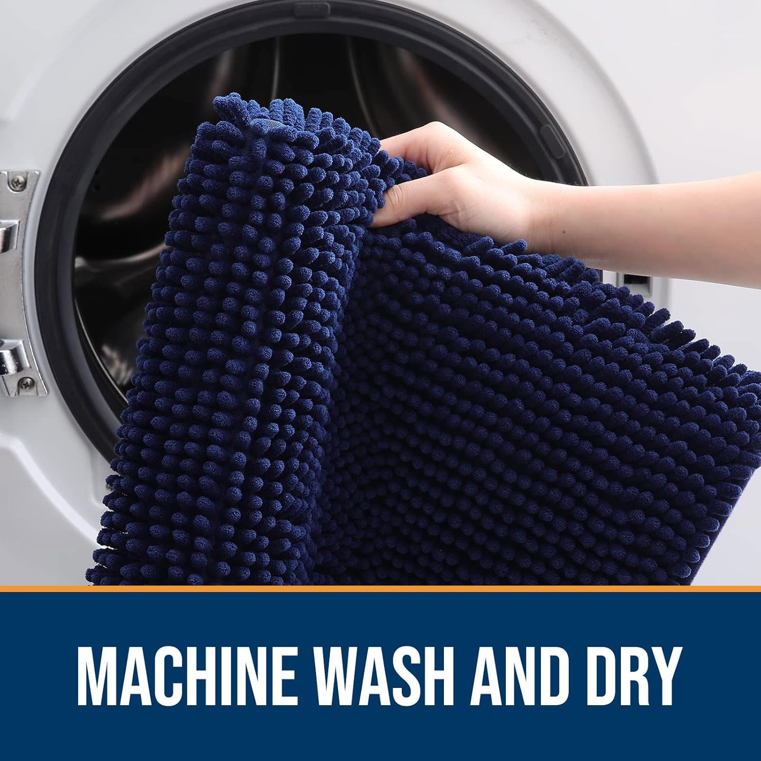 OLANLY Dog Door Mat for Muddy Paws 36x24, Absorbs Moisture and Dirt, Absorbent Non-Slip Washable Doormat, Quick Dry Chenille Mud Mat for Dogs, Entry Indoor Entryway Carpet for Inside Floor, Navy Blue