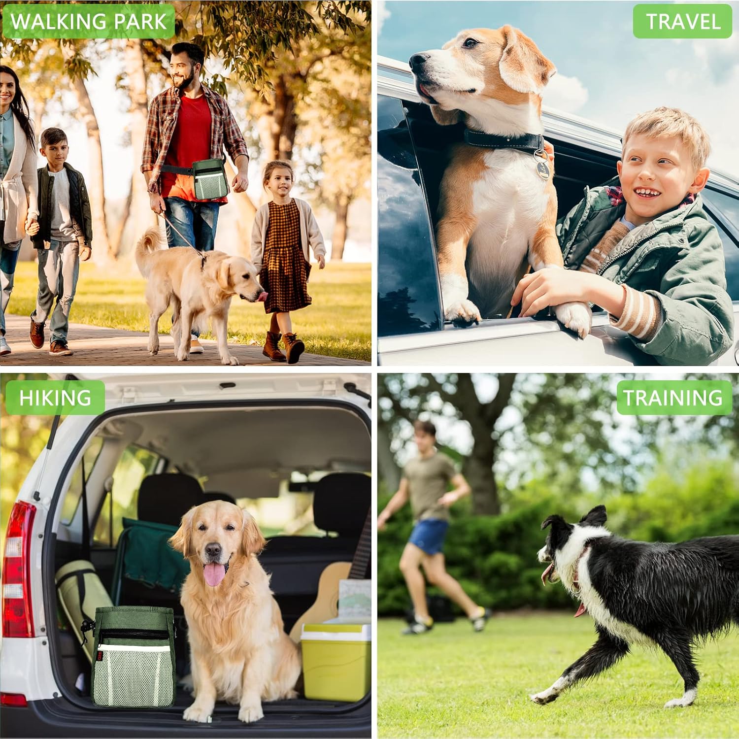 - Large Dog Treat Pouch [Best High-Capacity Option] β The dog treat bag is capable of holding more treats, accessories, and dog toys (and even larger items, like tennis balls) than most other options on the market. And a poop bag holder on back, so that you can prepare immediately when you need it