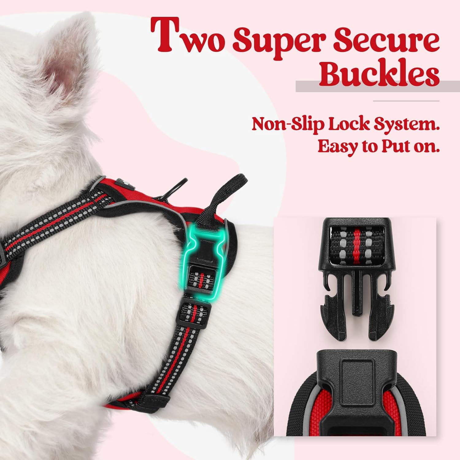 rabbitgoo Dog Harness No Pull with 2 Leash Clips, Adjustable Soft Padded, Reflective Oxford No Choke Pet Vest with Easy Control Handle for Puppy, Red,XS