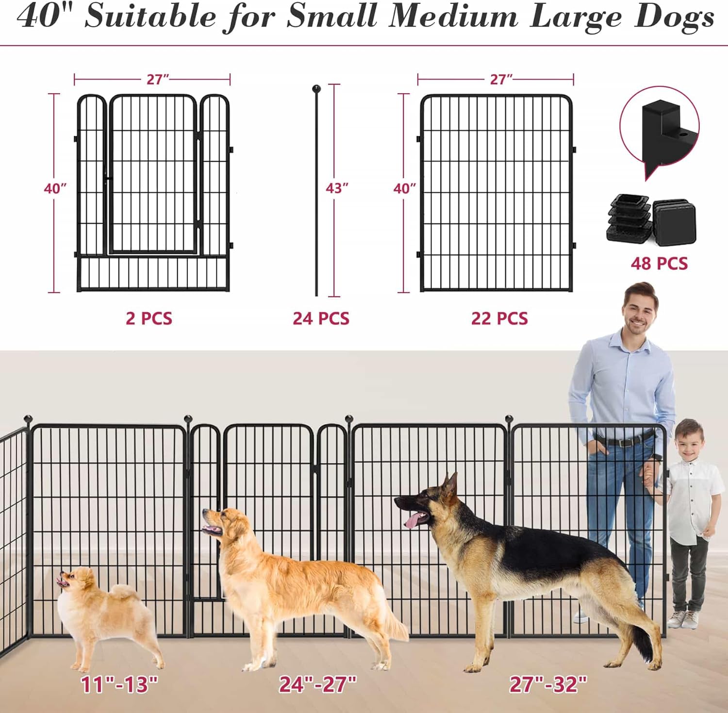 Dog Playpen 40 inch 24 Panels Indoor Outdoor Dog Pen for Large/Medium/Small Dogs Heavy Duty Metal Dog Fence Outdoor for Yard, Puppy Playpen with Door Portable Pet Fence for RV Camping Yard