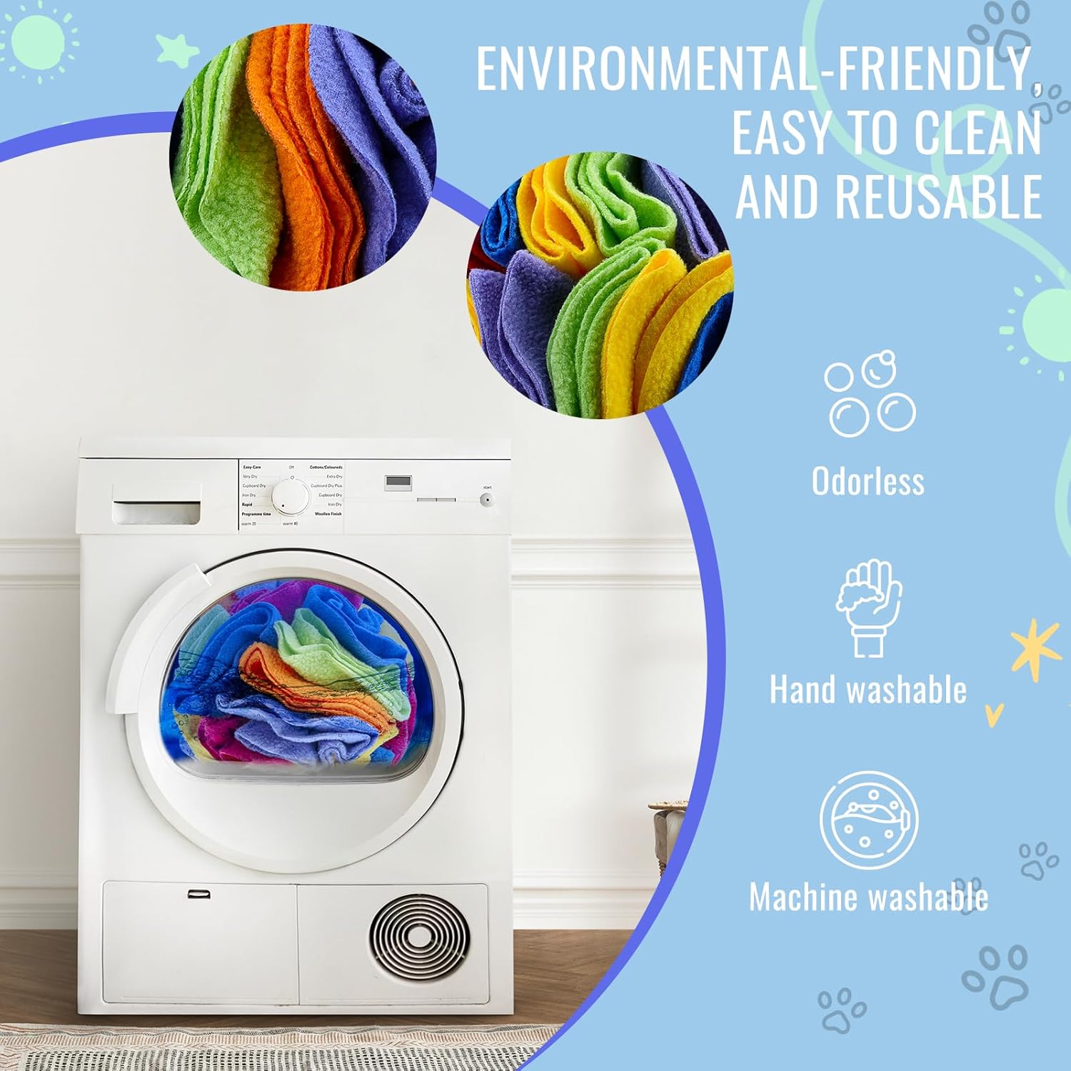 • 🐶Maintenance tips 🐶 It is recommended that you wash the sniffing ball immediately after your pet has finished playing, you can hand wash or machine wash, tumble dry low, do not bleach. Also, always supervise your dog while it is playing.