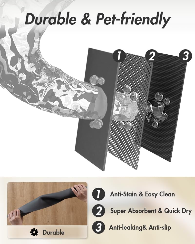 - Super Absorbent & No Stains: Special absorbent surface hide any messy stains completely.โ Magic pet food mat catch every drip off pets' chin around the pet water or food bowl. Prevent Say goodbye to spread stains and messy feeding area.