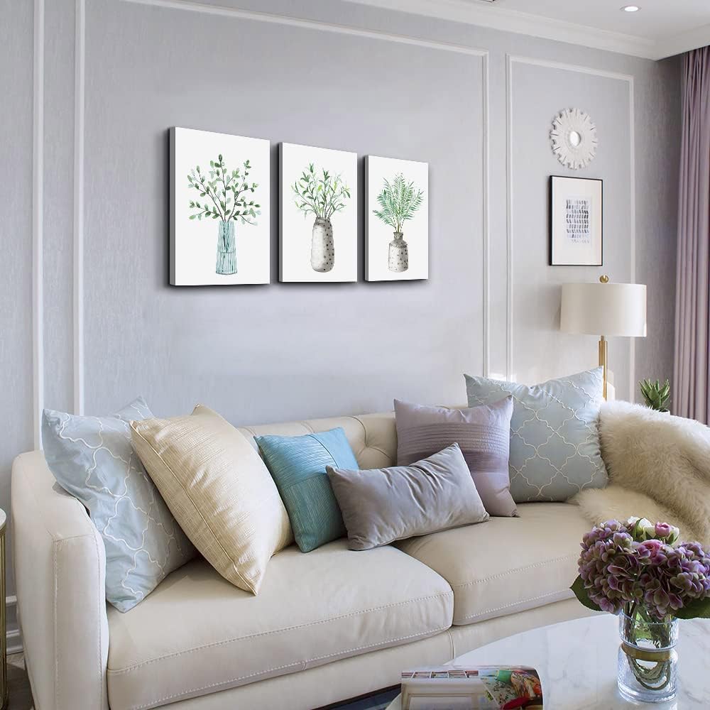 AHUASJART Canvas Wall Art - Paintings for Kitchen, Dining Room, Family Wall Decor - Green Leaf Vase, 3 Piece
