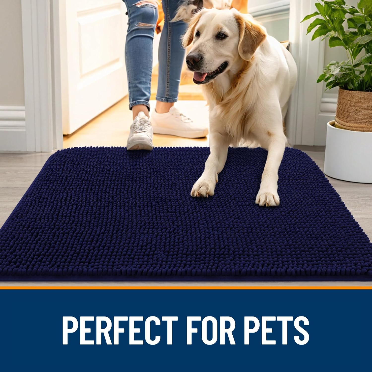 OLANLY Dog Door Mat for Muddy Paws 40x32, Absorbs Moisture and Dirt, Absorbent Non-Slip Washable Doormat, Quick Dry Chenille Mud Mat for Dogs, Entry Indoor Entryway Carpet for Inside Floor, Navy Blue