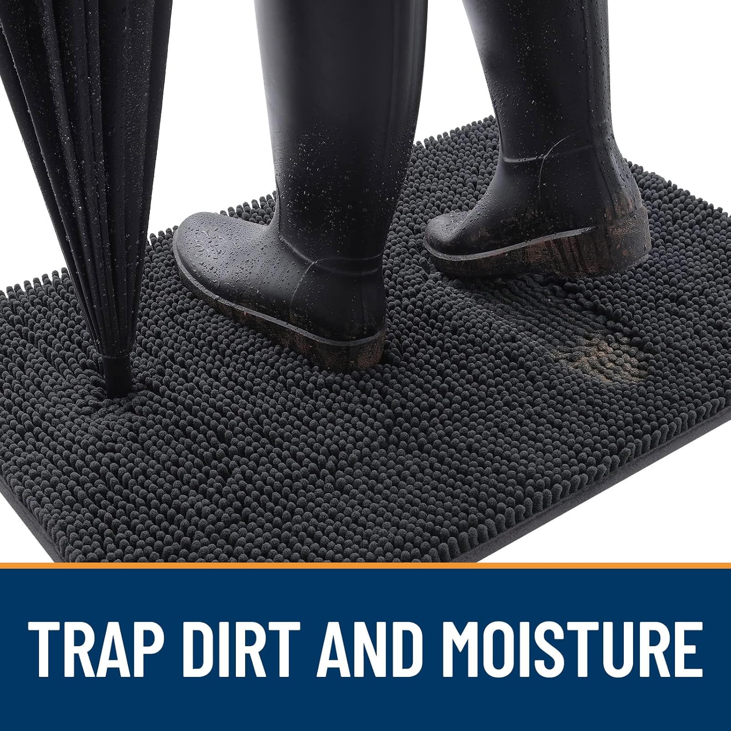 OLANLY Dog Door Mat for Muddy Paws 48x30, Absorbs Moisture and Dirt, Absorbent Non-Slip Washable Doormat, Quick Dry Chenille Mud Mat for Dogs, Entry Indoor Entryway Carpet for Inside Floor, Dark Grey