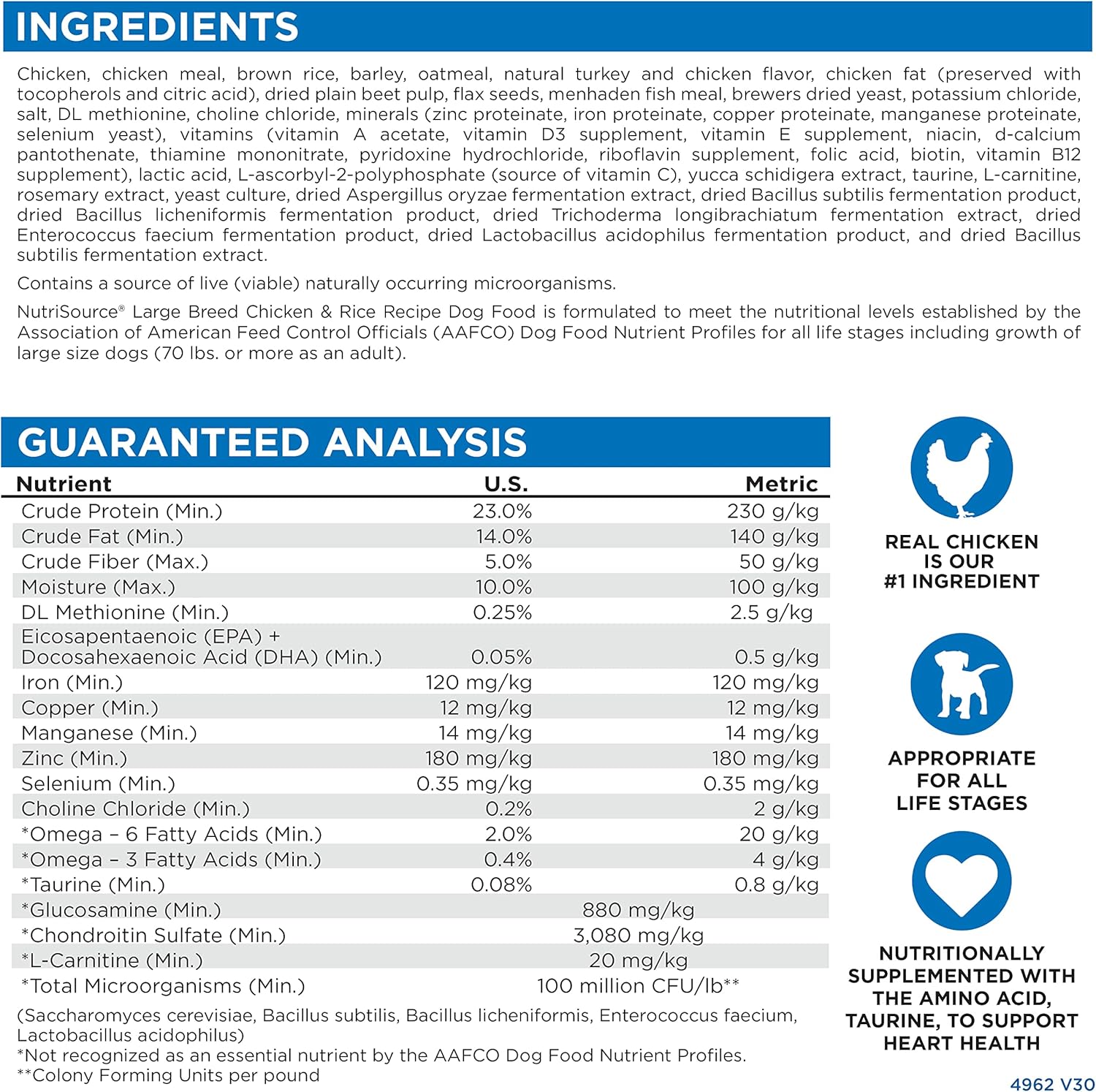 - As a member of our grain inclusive series, NutriSource Chicken and Rice Dry Dog Food is formulated to meet AAFCO guidelines for all lifestages