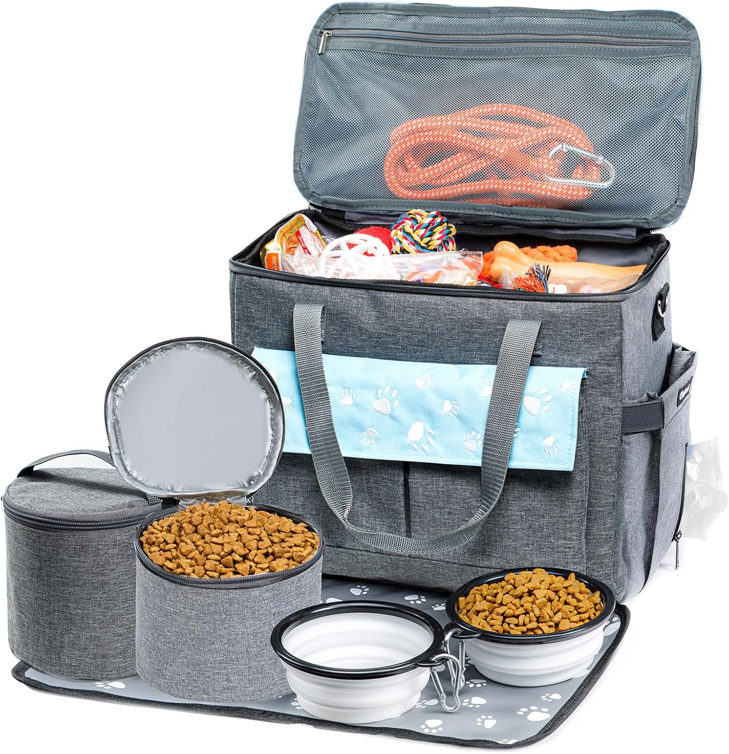 Dog Travel Bag, Airline Approved Dogs Bags for Traveling, 2 Dog 's Food Travel Container and Collapsible Bowls, Weekend Pet Travel Bags (X-Large)