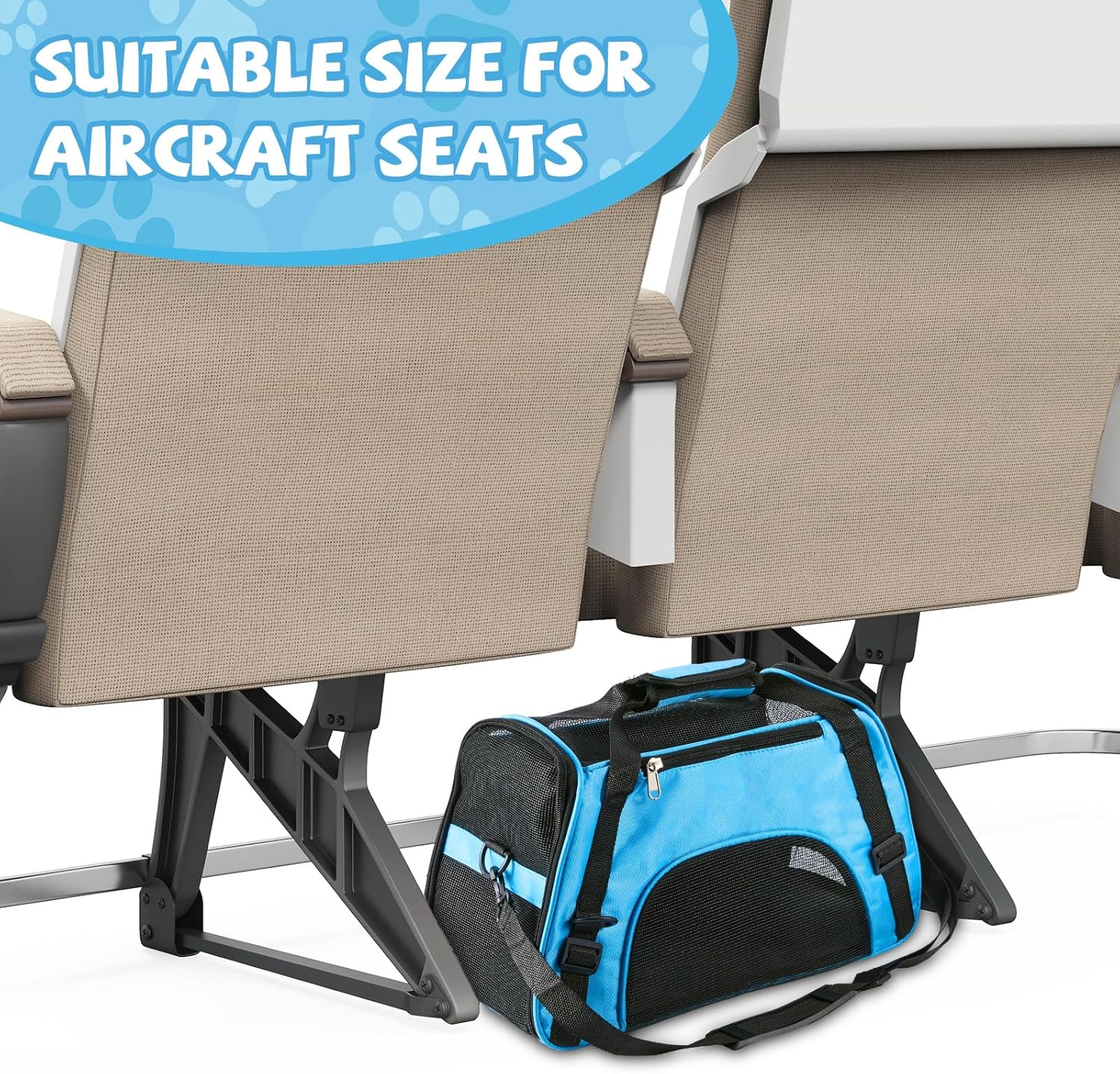 Sweetude 4 Pcs Cat Carrier Soft-Sided Pet Carrying Bag for Cat Under 13 Lbs, 16.9 x 11x 7.5 Inch, Portable Foldable Comfortable Bag for Small Pet Travel(Rose Red, Blue)