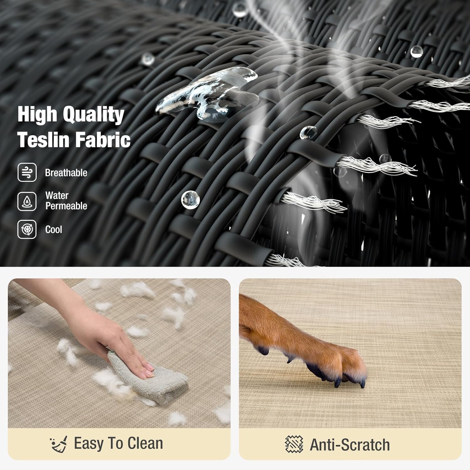 - All-Season Comfort: The Teslin Mesh mat not only allows the air to flow, but also allows the water to penetrate, keeping your pet cool in summer; The elevated dog bed lifts your dog 8.2 inches off the hard ground, mud or wet grass, alleviating joints pressure and keeping health