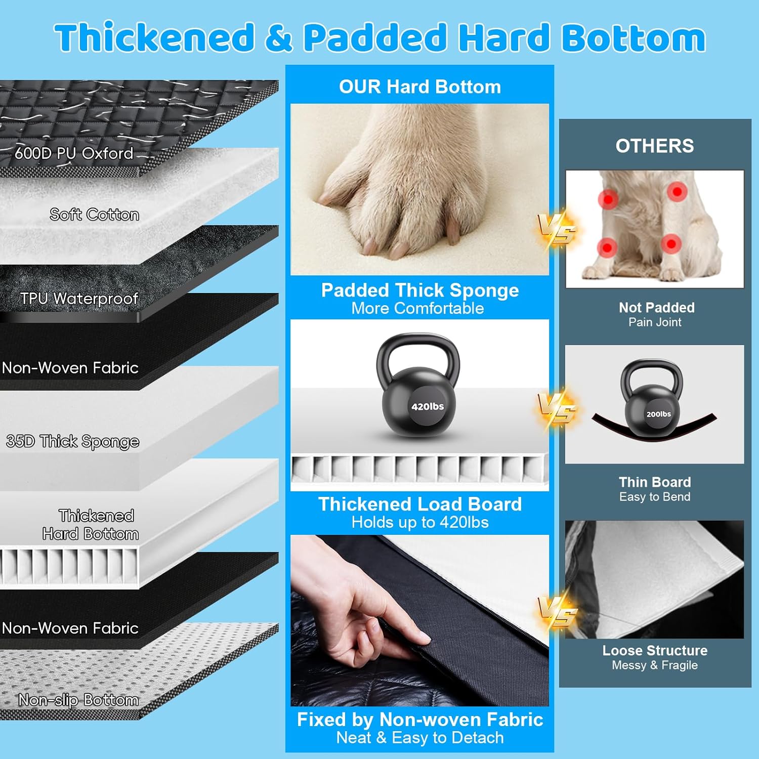 - Fits Full-Size SUVs & Trucks: 56.7 " L x 30.3" W (XL hard bottom size) is designed for full size SUVs and Crew Cab Trucks, suitable for F150/ F250/F350/RAM 1500/Tundra/GMC Crew Cab, etc. Please measure the space of your back seat before ordering