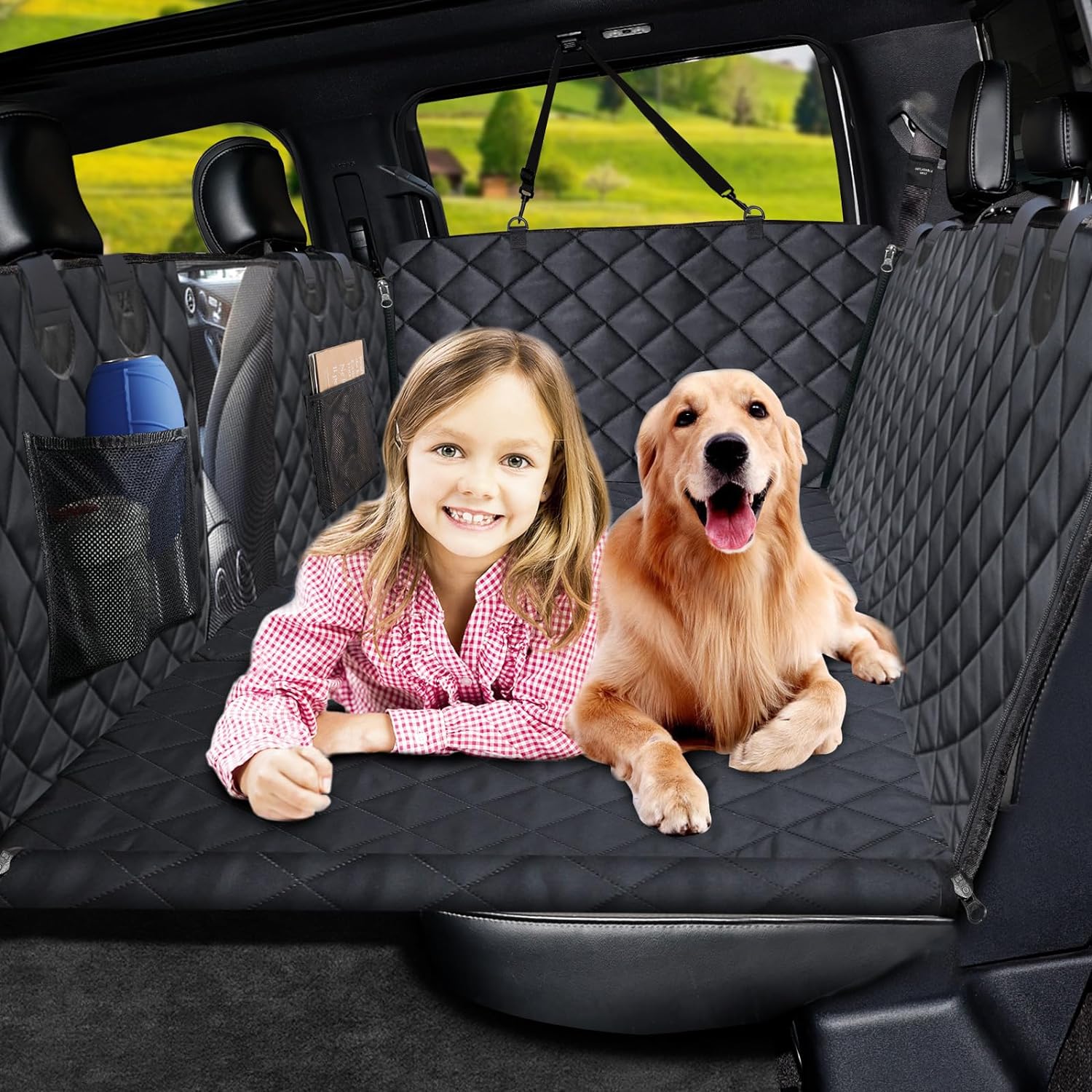 - Back Seat Turns into Dog Car Bed: Built-in sturdy hard bottom,the dog seat cover extends the back seat of full-size SUV and truck into a large dog bed. The backseat extender provides your dogs with maximum space and strong support up to 400 lbs, suitable for dogs of all breeds, and allowing them to lay down comfortably during long car rides.