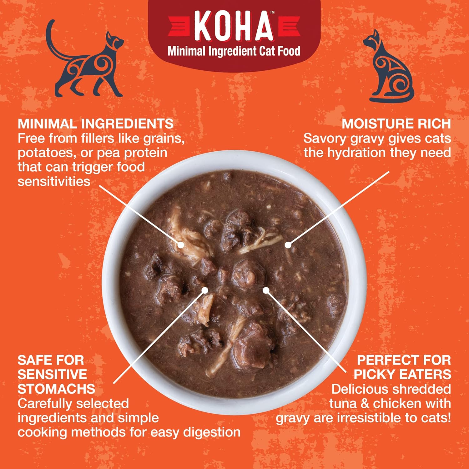 KOHA Poké Bowl Tuna & Chicken Entree in Gravy for Cats, 12-Pack of 3oz Pouches