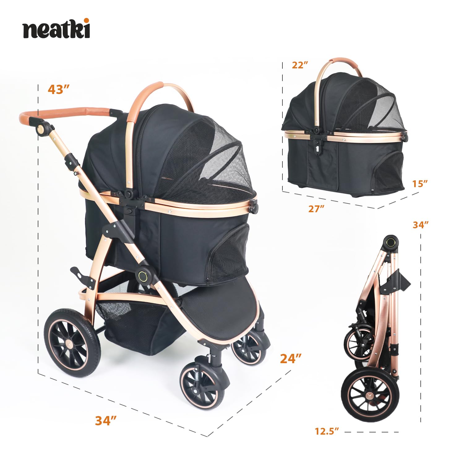 - Multi-Functional Design β Effortlessly switch between a pet stroller, carrier, and a car seat for ultimate versatility. This dog and cat stroller with a removable carrier enhances every adventure for daily walks or convenient travel.
