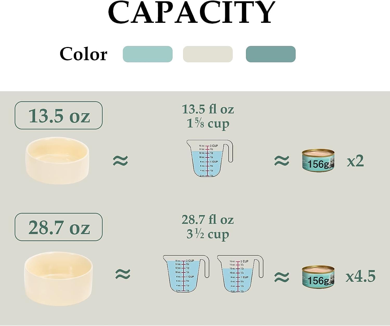 - [Capacity]:1.7 cups(400 ml, 13.5 Fluid Ounces) capacity of each single bowl, perfect for different breeds of kittens and adult cats, as well as small dogs